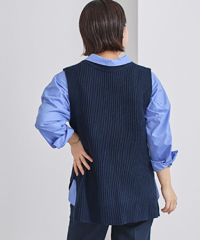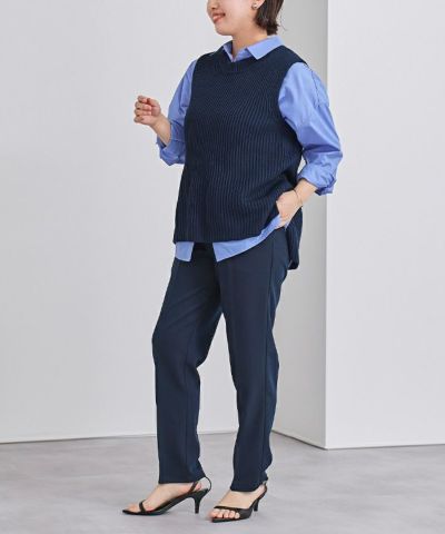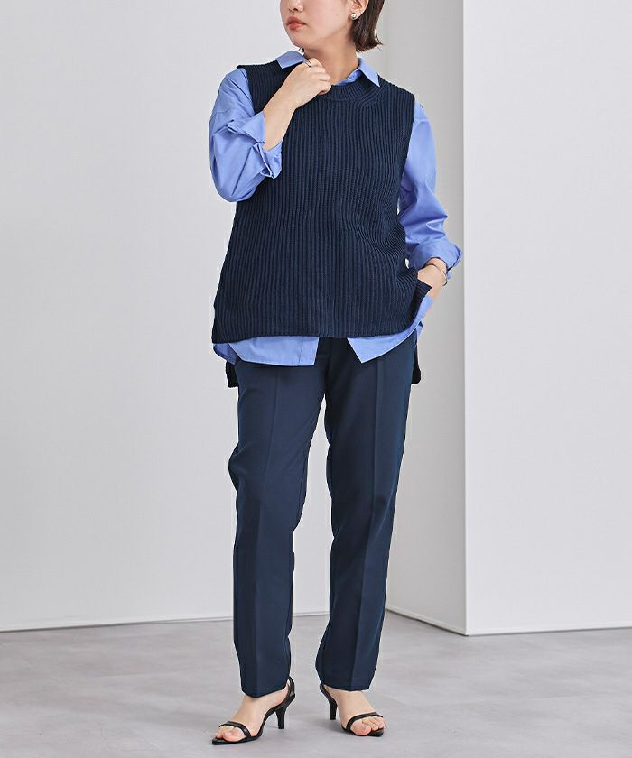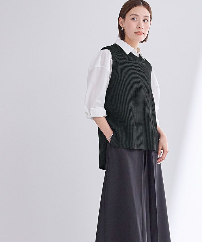 シアートップスや襟付きシャツなどとレイヤードしてコーディネートもお楽しみ頂けます。