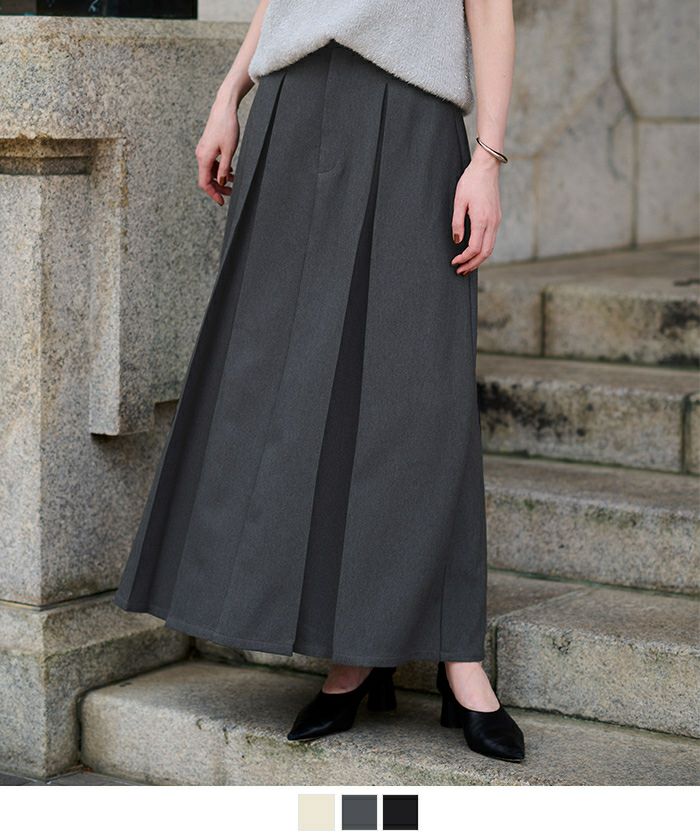 プリーツのようなタックディテールが美しい、クリーンな印象のセミフレアスカート。