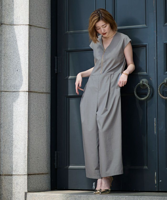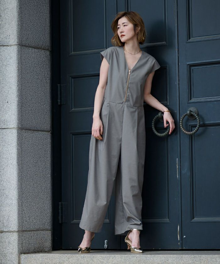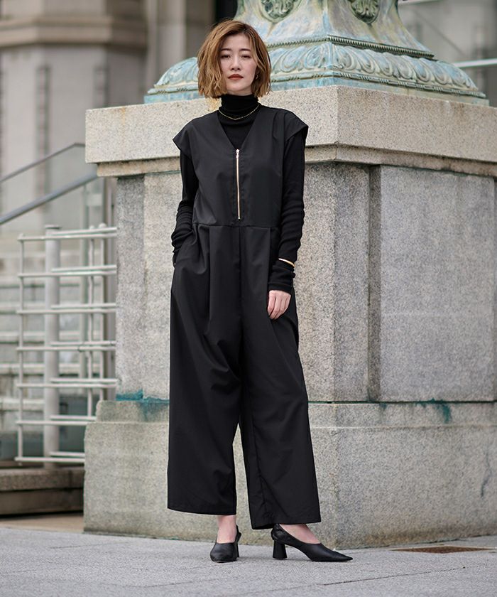 トレンド感のあるZIPデザインが目を引く、スタイリッシュなオールインワン。