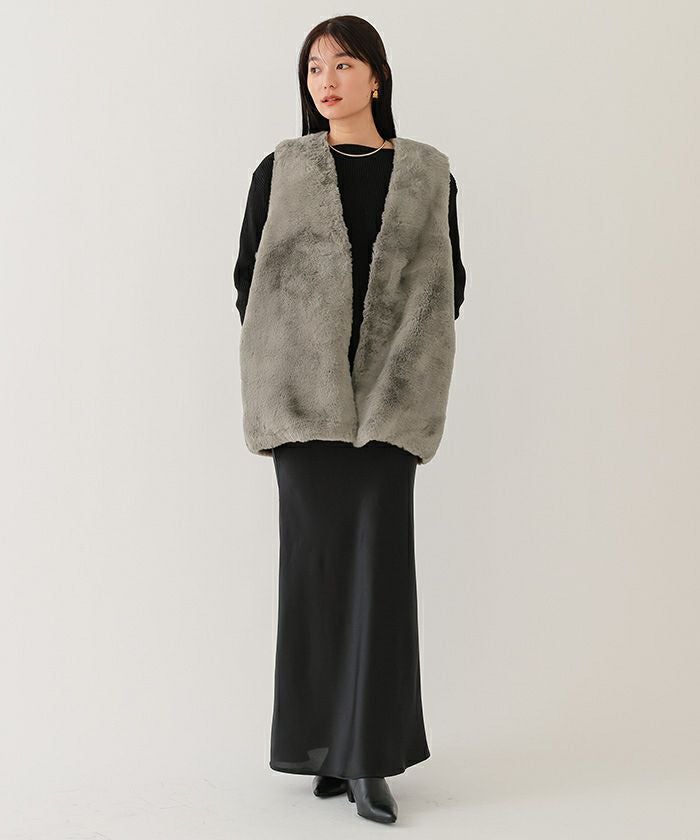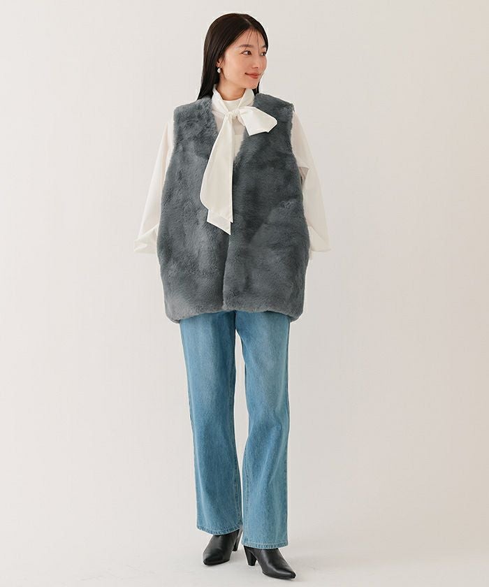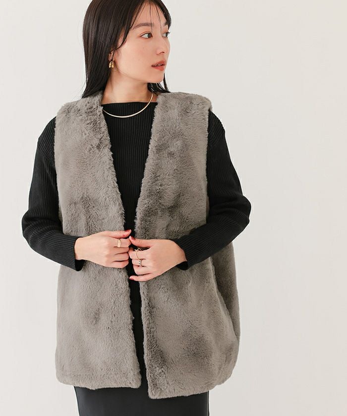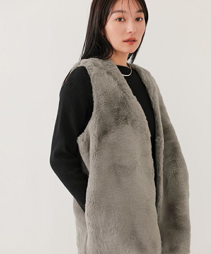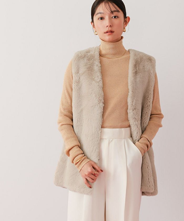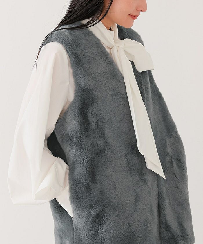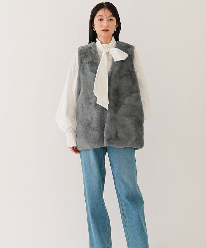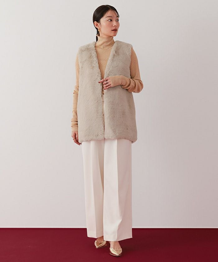 ノーカラーですっきりとした印象に仕上げ、顔まわりをすっきり見せてくれるデザイン。