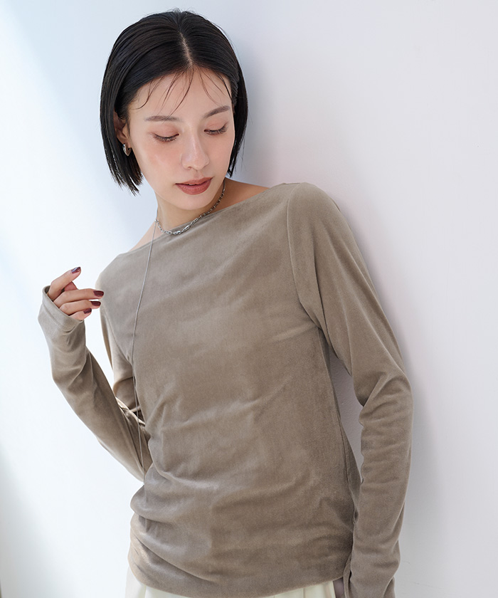 なめらかな光沢感が魅力のベロア素材を使用した、エレガントなAラインスカート。フロントに施されたボックスタックが、裾にかけて美しく広がり、女性らしいシルエットを演出します。シンプルなトップスと合わせるだけで、スタイリングが華やかに決まる一枚です。