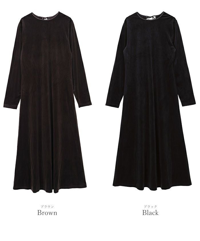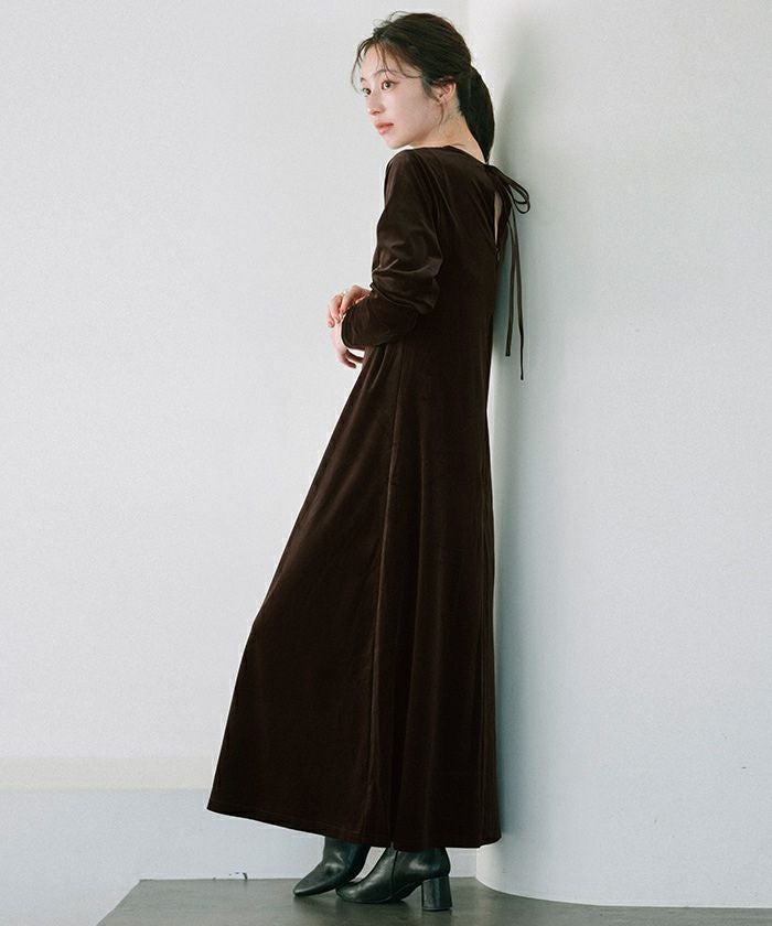 バックリボンフィットアンドフレアベロアワンピース