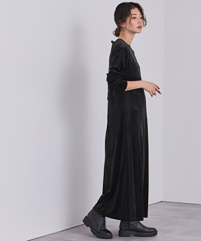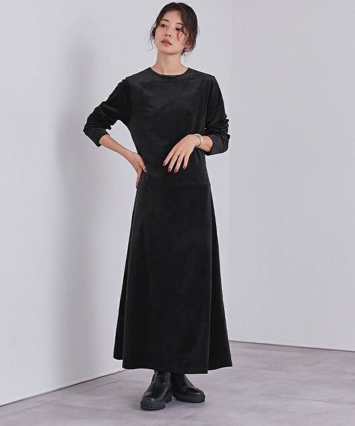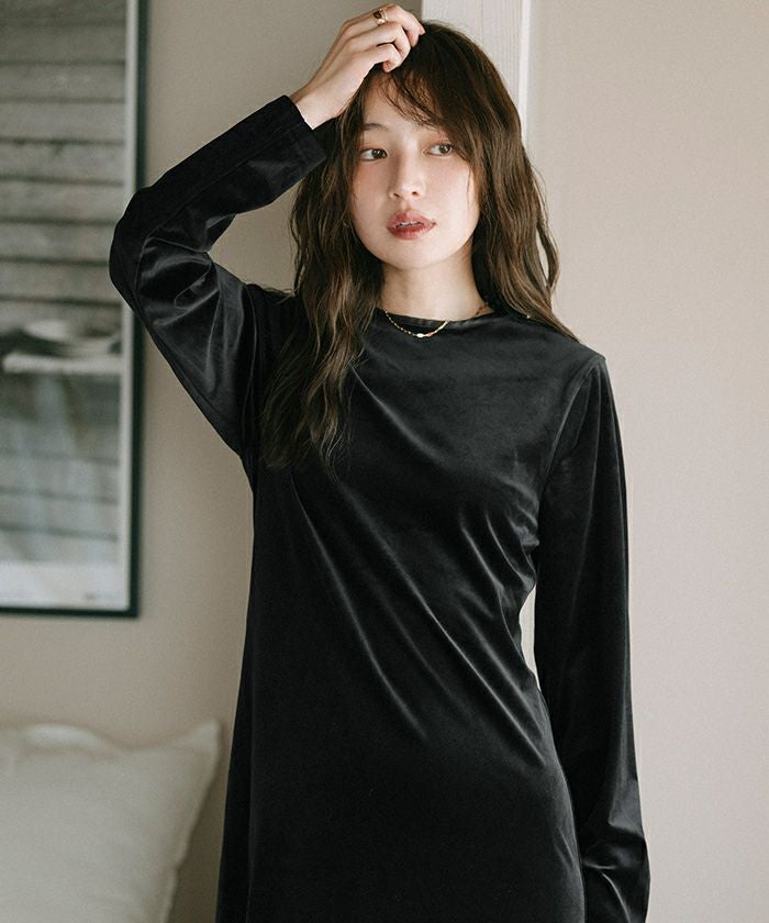 すっきりとしたシルエットが魅力のベロアワンピース。