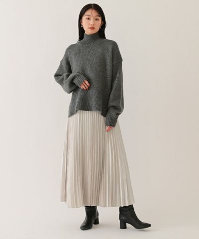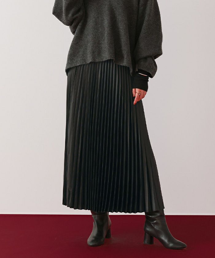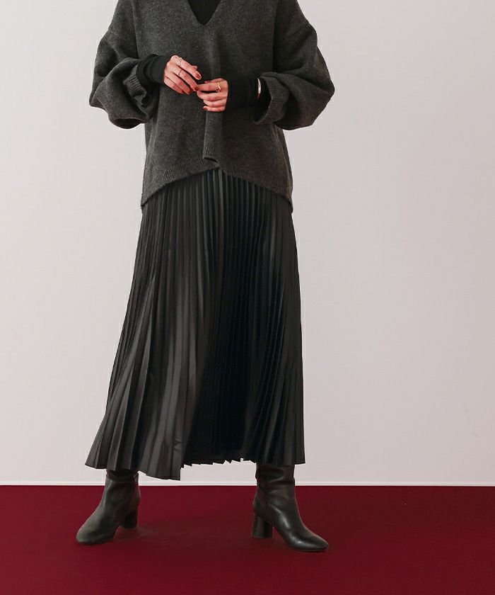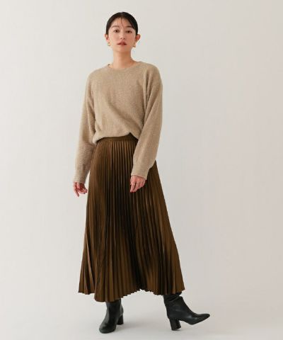 歩くたびに揺れるプリーツと上品な光沢感が女性らしさを演出。
