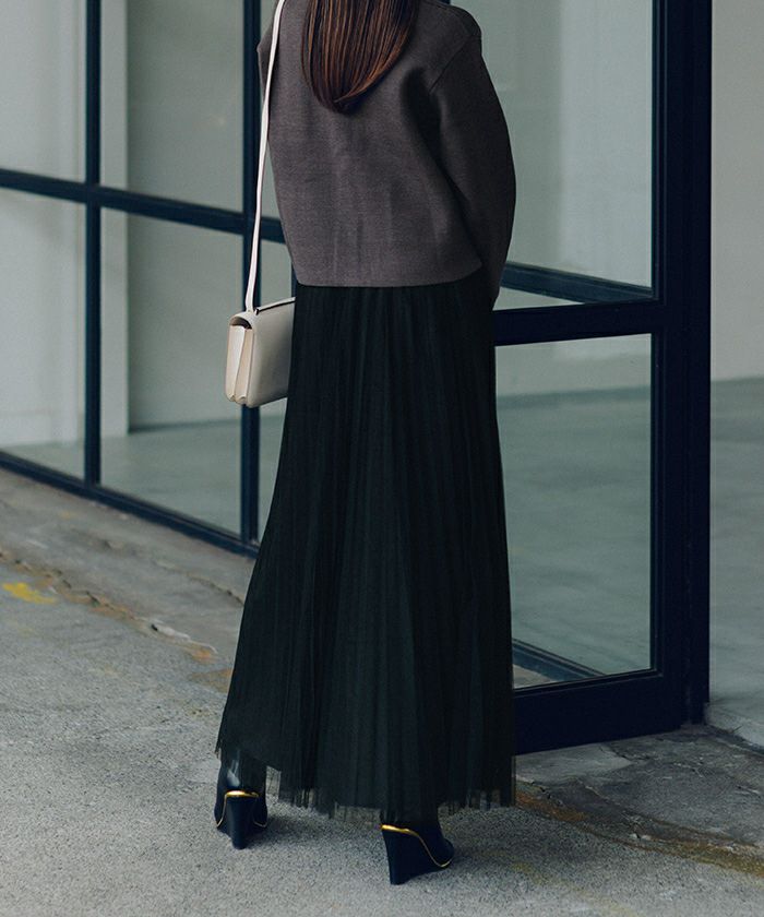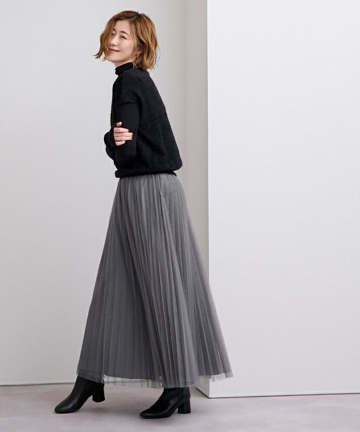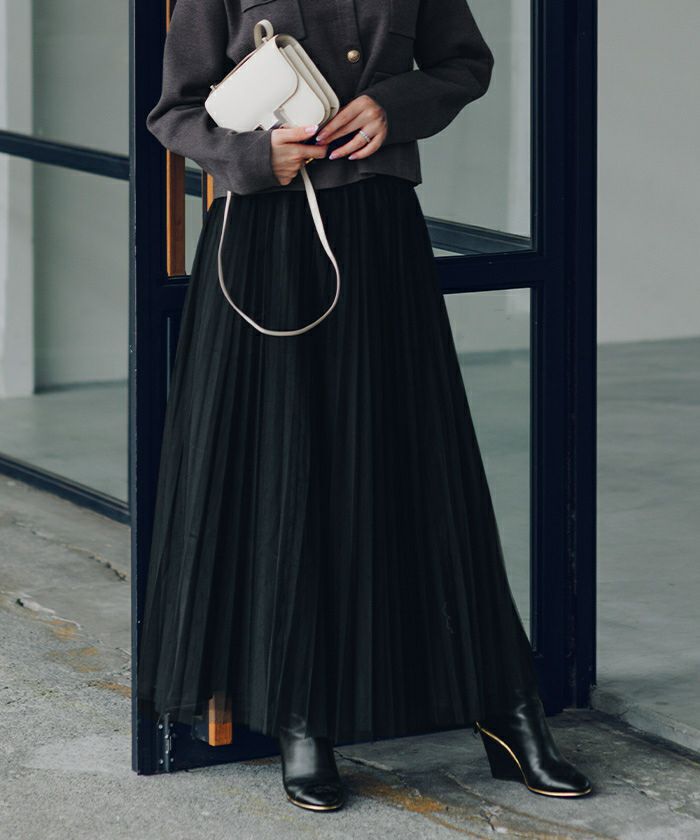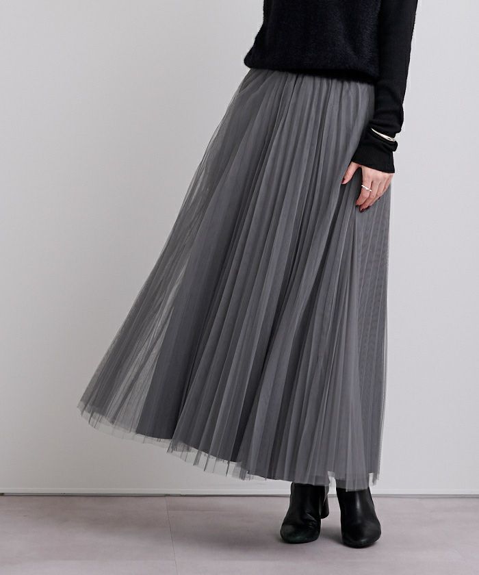 グレーを購入しました。プリーツが広がりすぎないので、すっきり着られました。黒と迷いましたが、グレーにして良かったです。色味が柔らかく着やすいと思います。