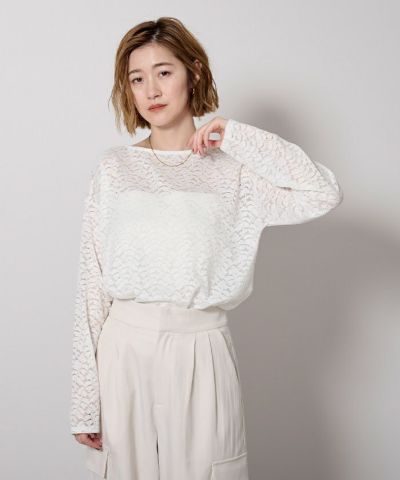 甘くなりすぎないボタニカル調のレースが、大人の女性にちょうどいいフェミニンさを演出します。