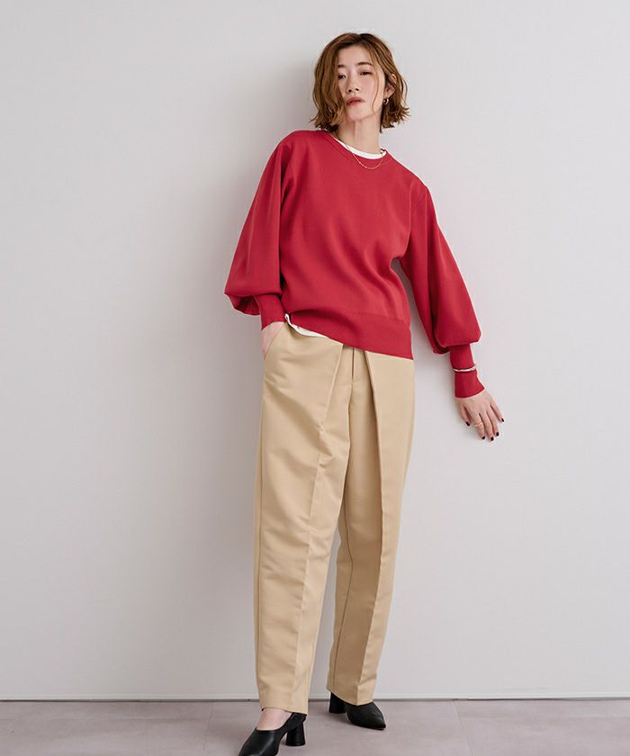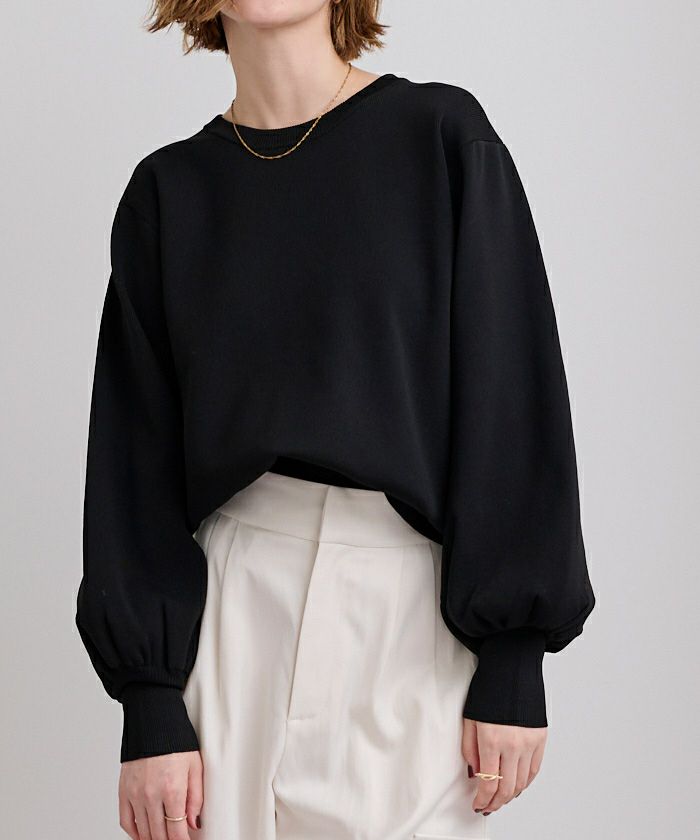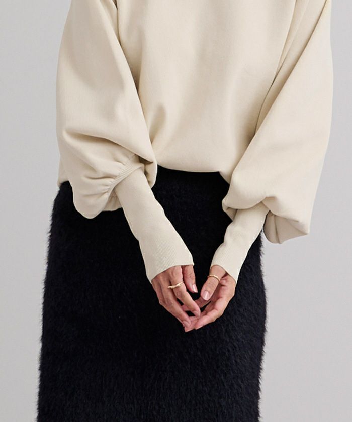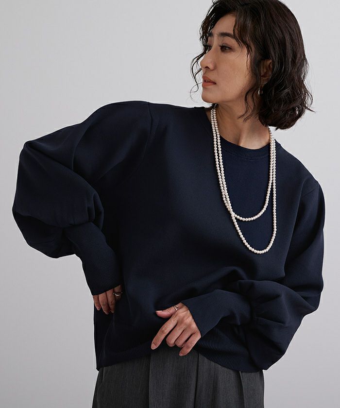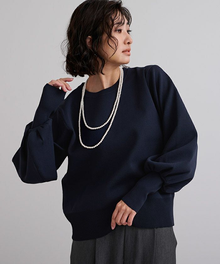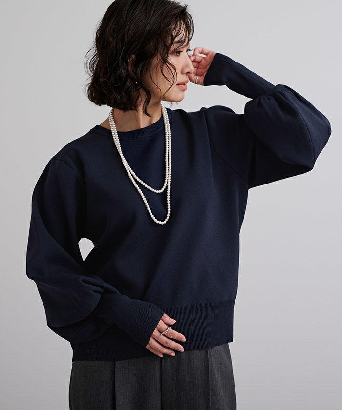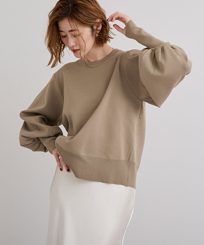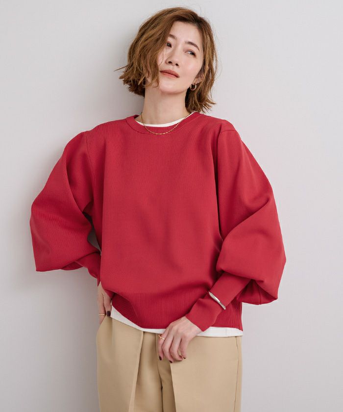 袖のボリュームが目を引くニットプルオーバー