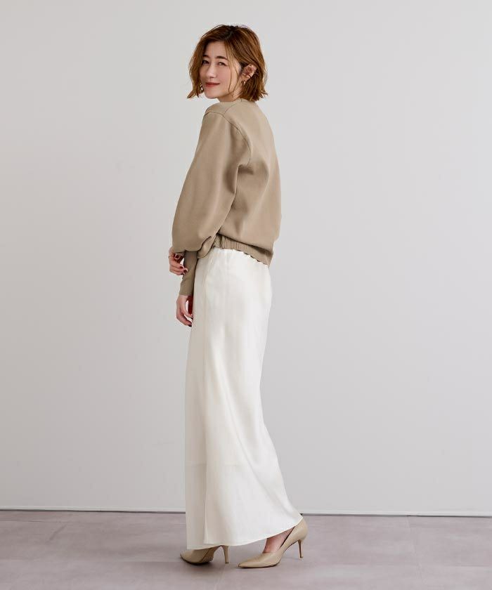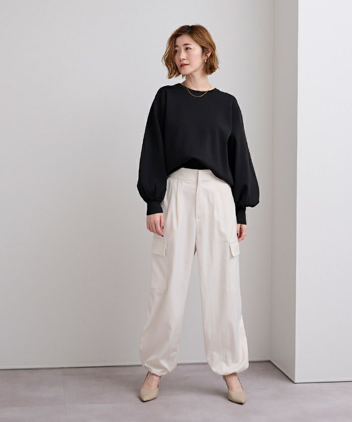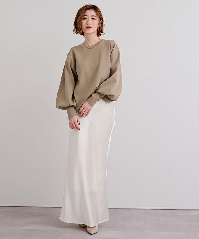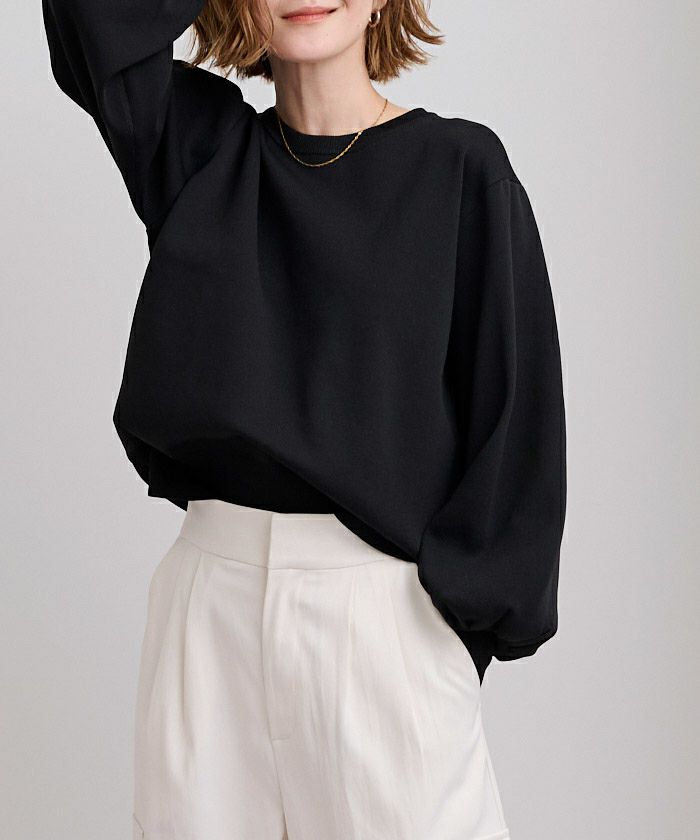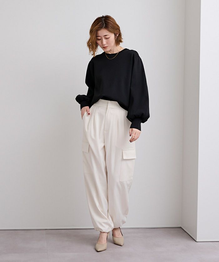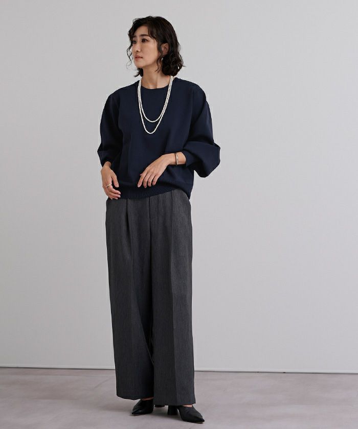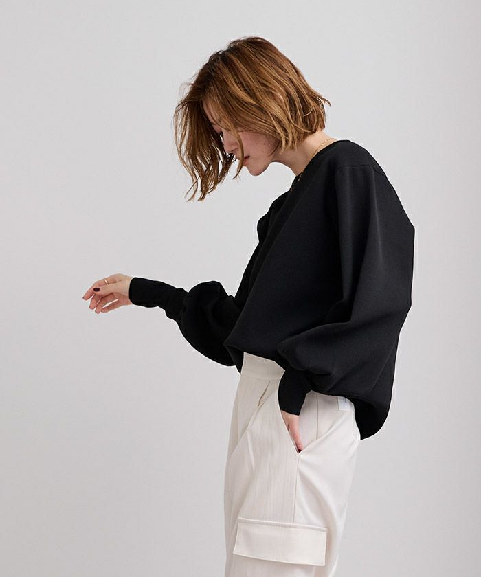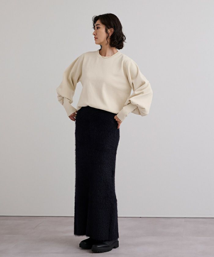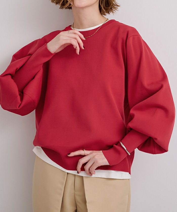 袖のボリュームが目を引くニットプルオーバー