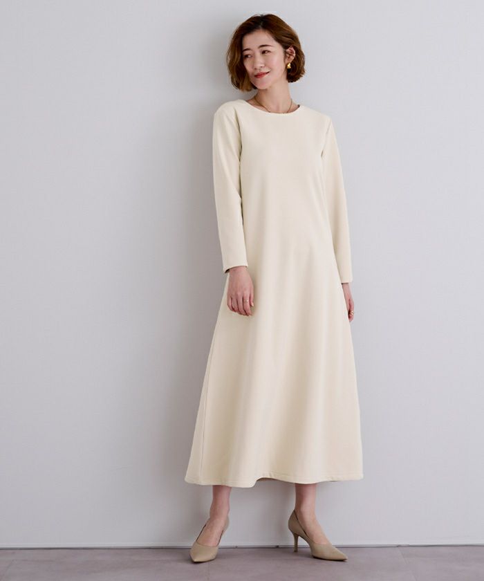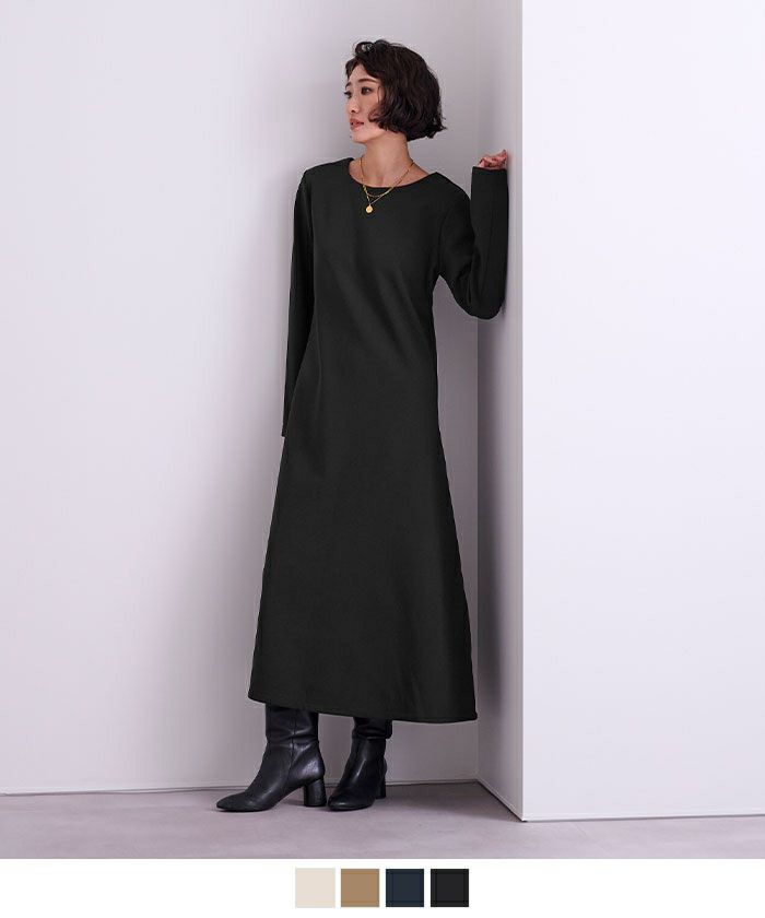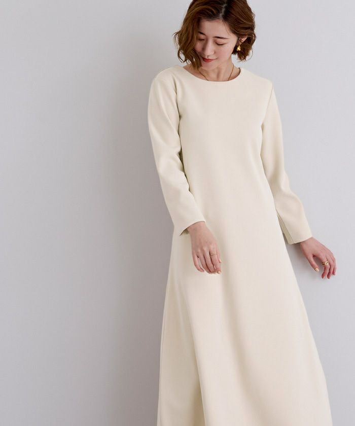 ラインの美しさが際立つ、女性らしいシルエットのワンピース。