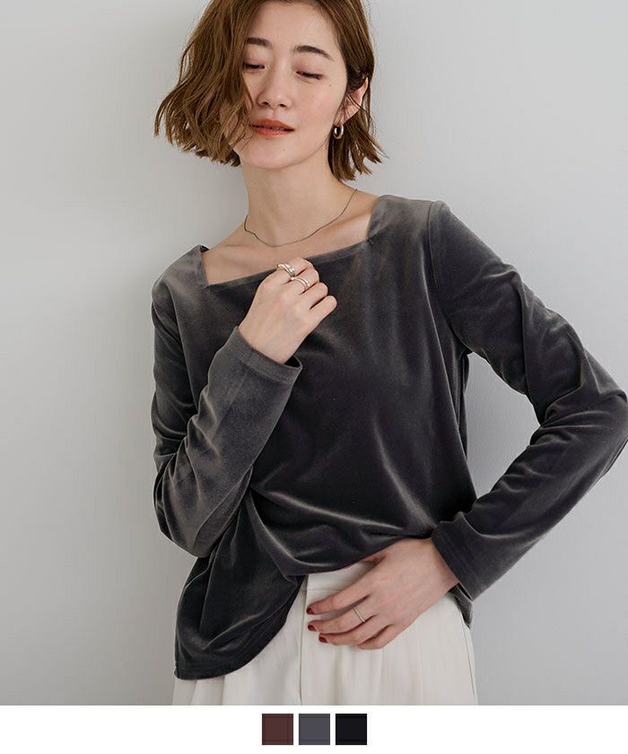 スクエアネックベロアプルオーバー
