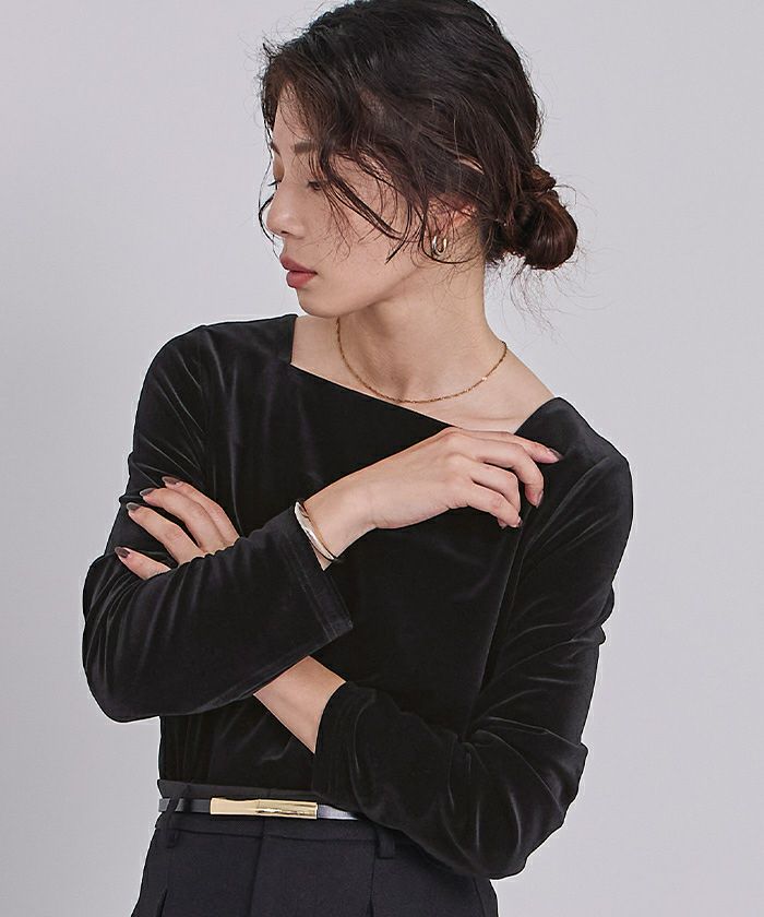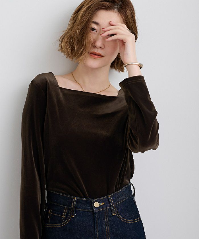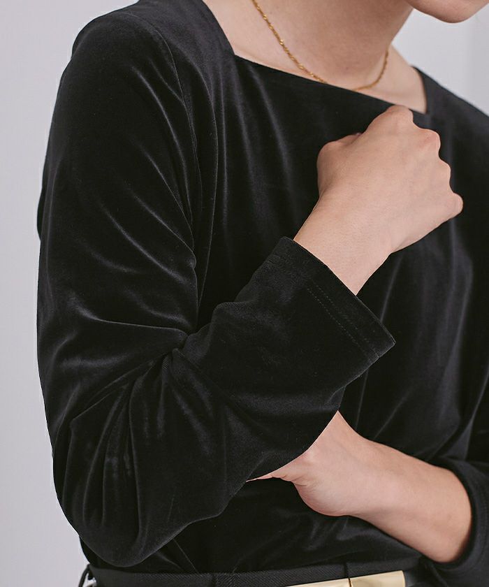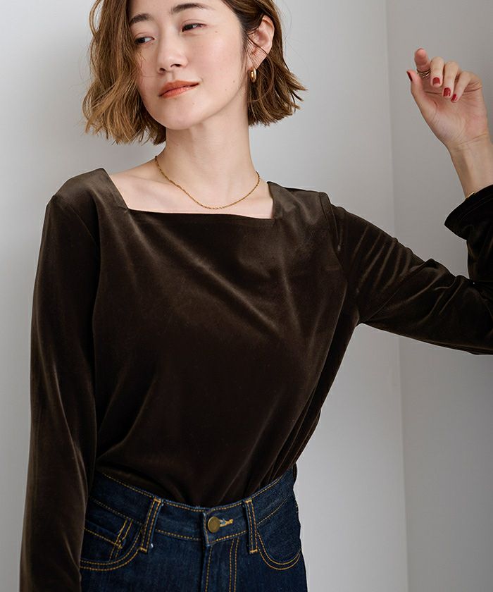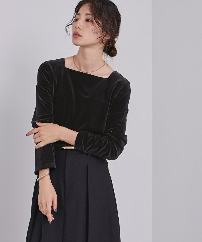すっきりと開いたスクエアネックがデコルテを綺麗に見せてくれます。