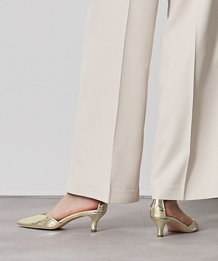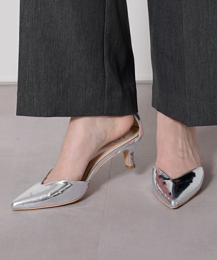 つま先のVカットアクセントのパンプス。