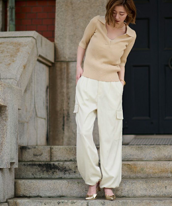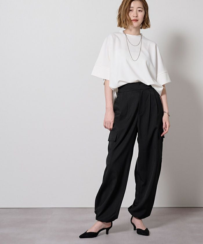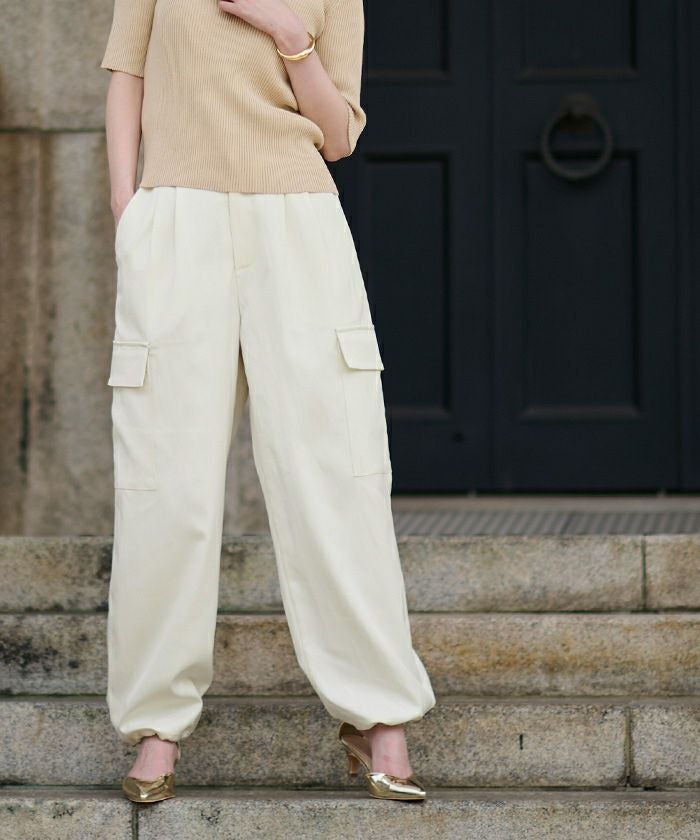 キレイめな素材にカーゴポケットを組み合わせたカーゴパンツ。