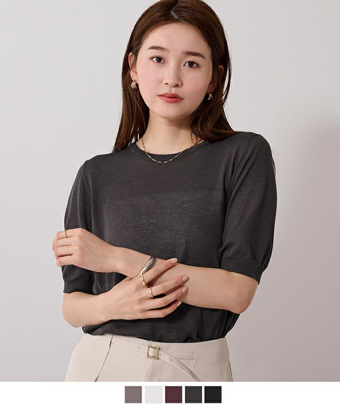 クルーネックハーフスリーブシアーニット【メール便可/100】