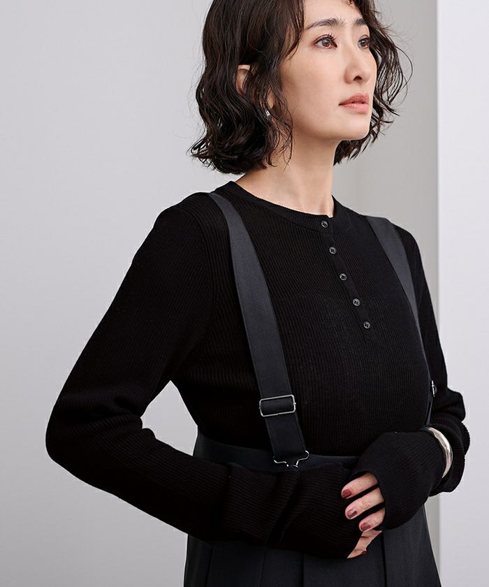ヘンリーネックシアーリブニット【メール便可/100】