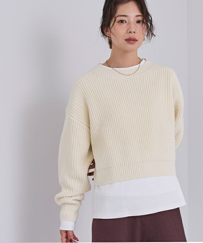 クルーネッククロップドニット