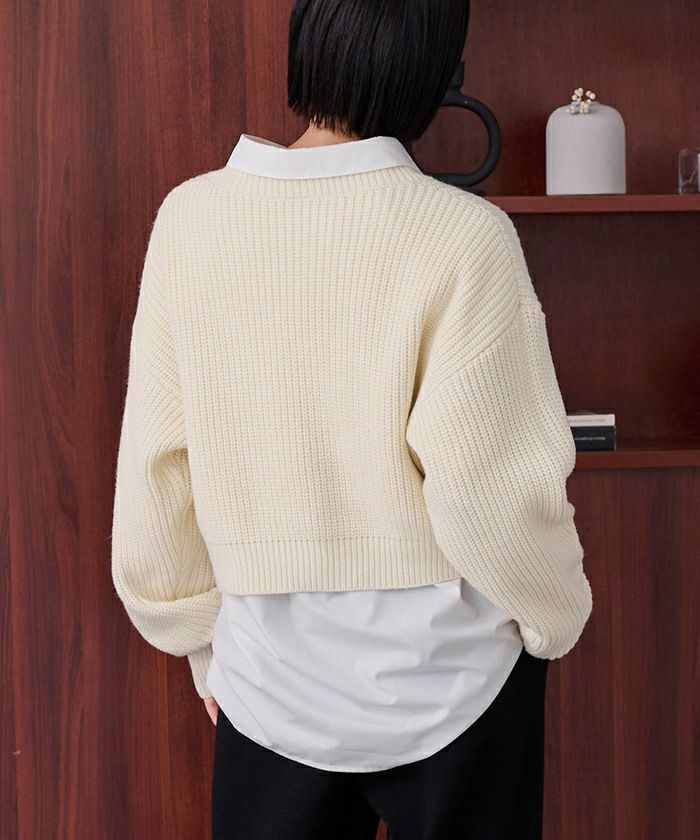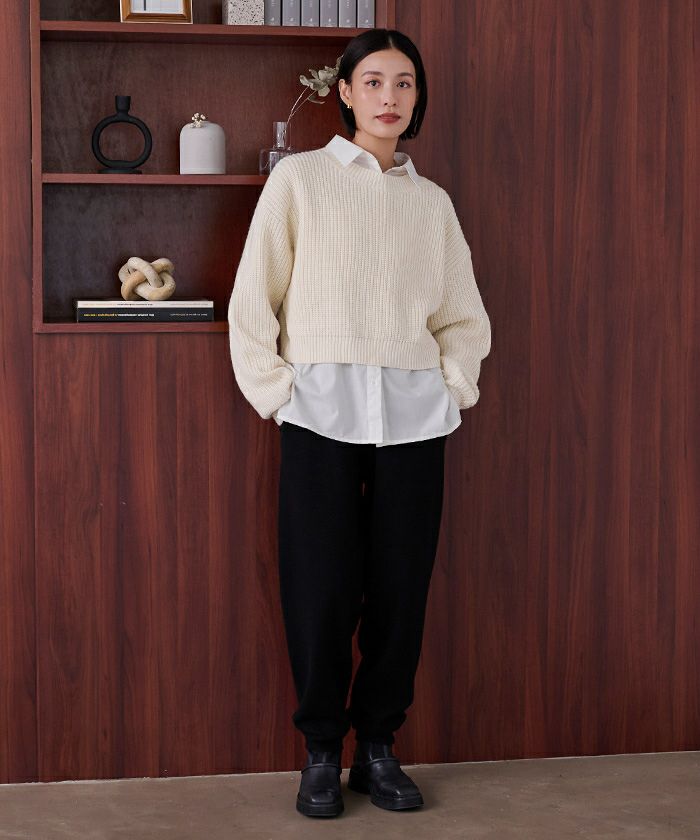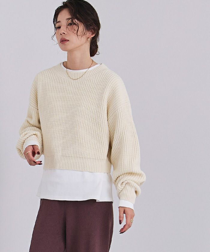 クルーネッククロップドニット
