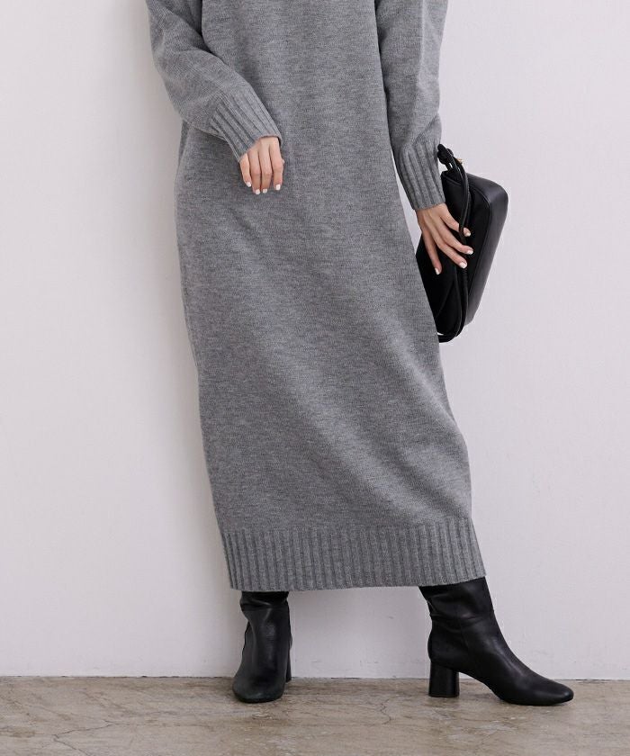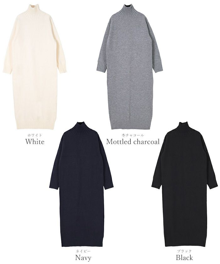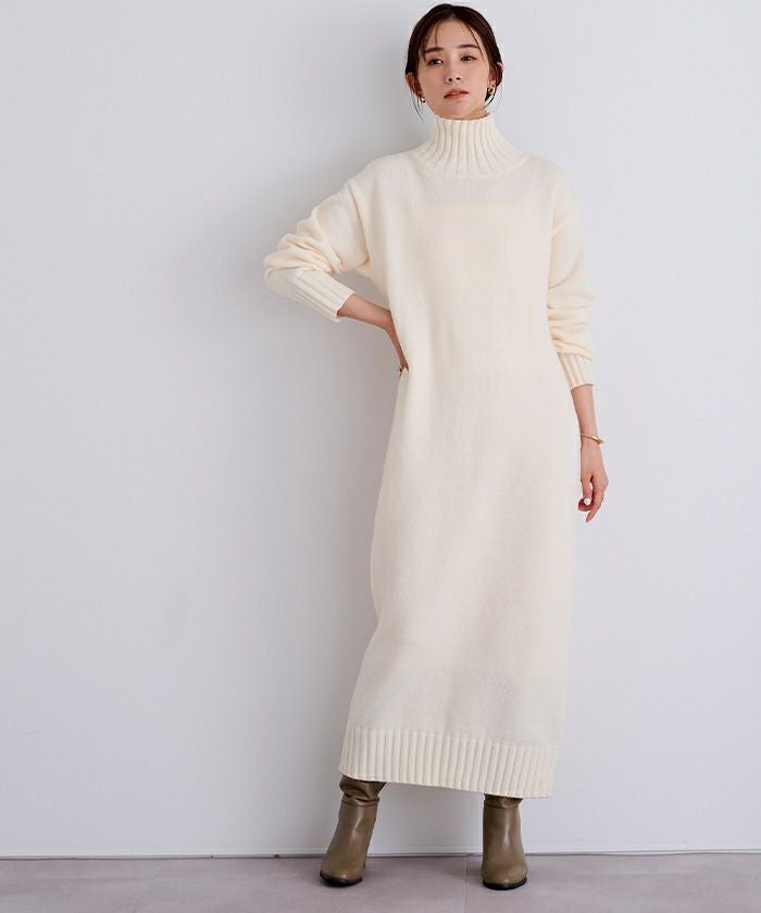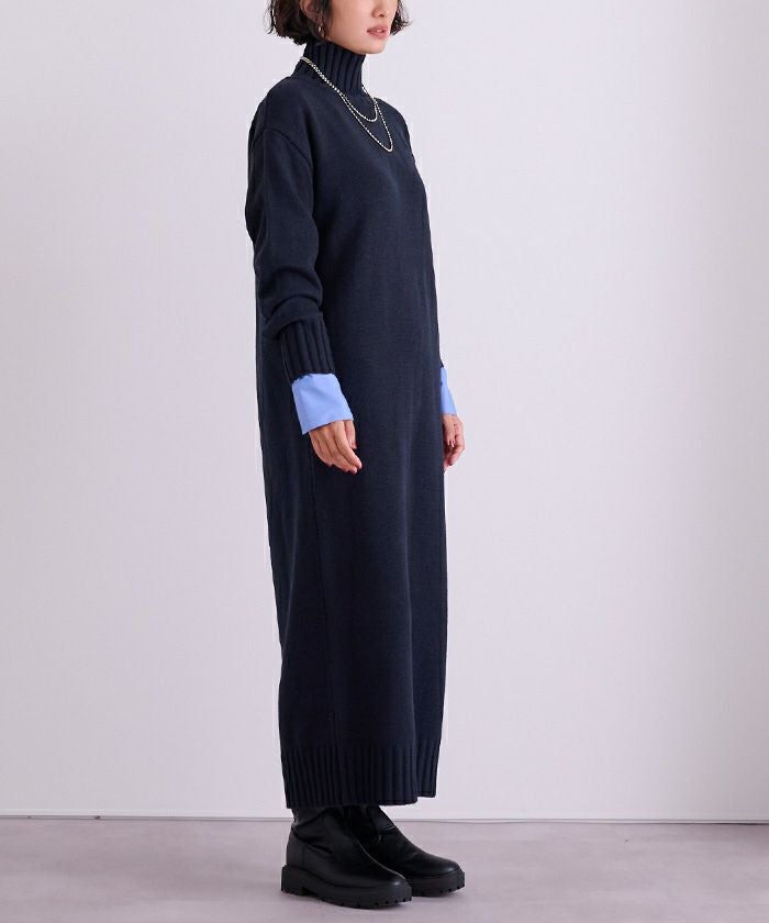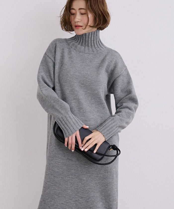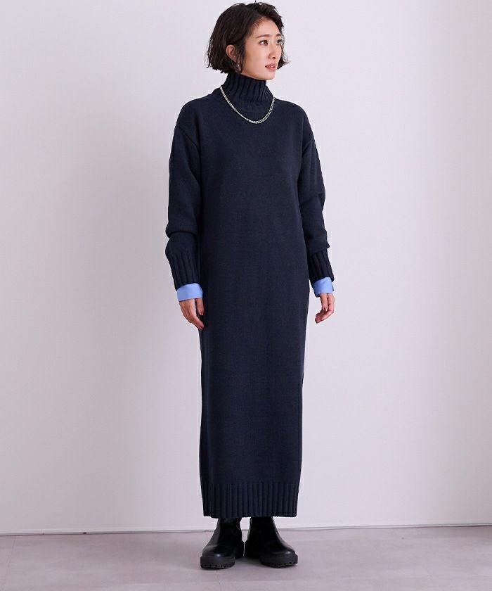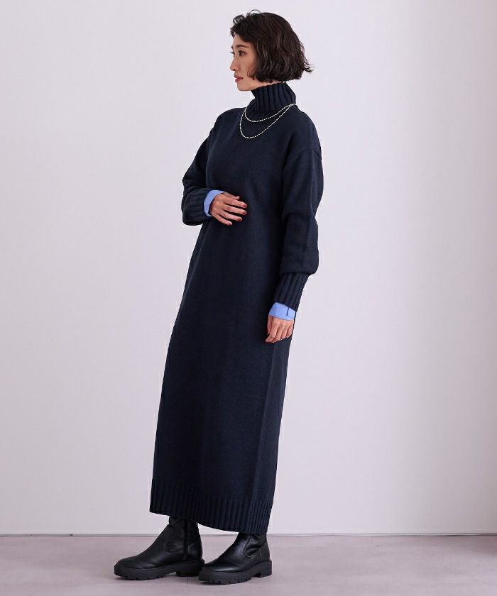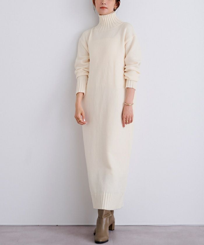 タートルネックIラインニットワンピース