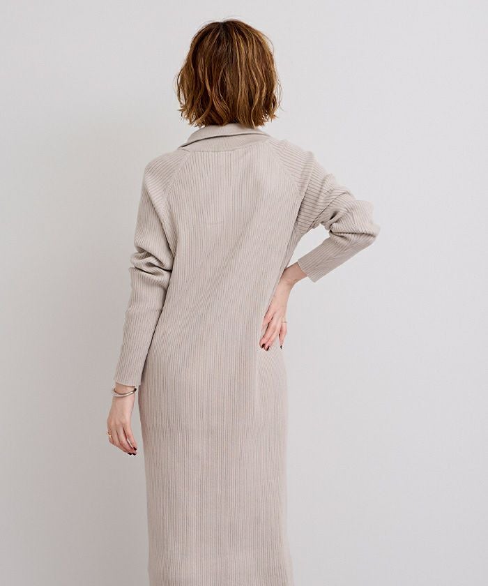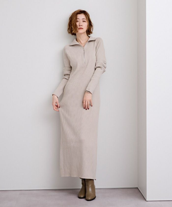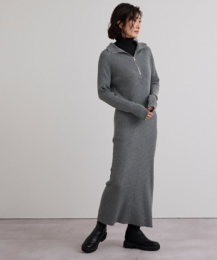 ZIPディテールが目を引く、洗練されたニットワンピース。