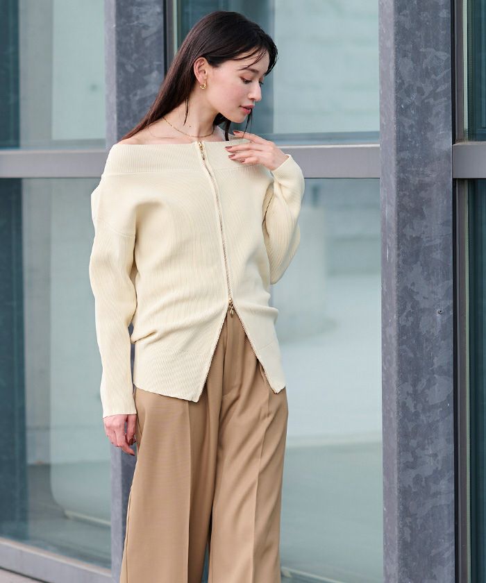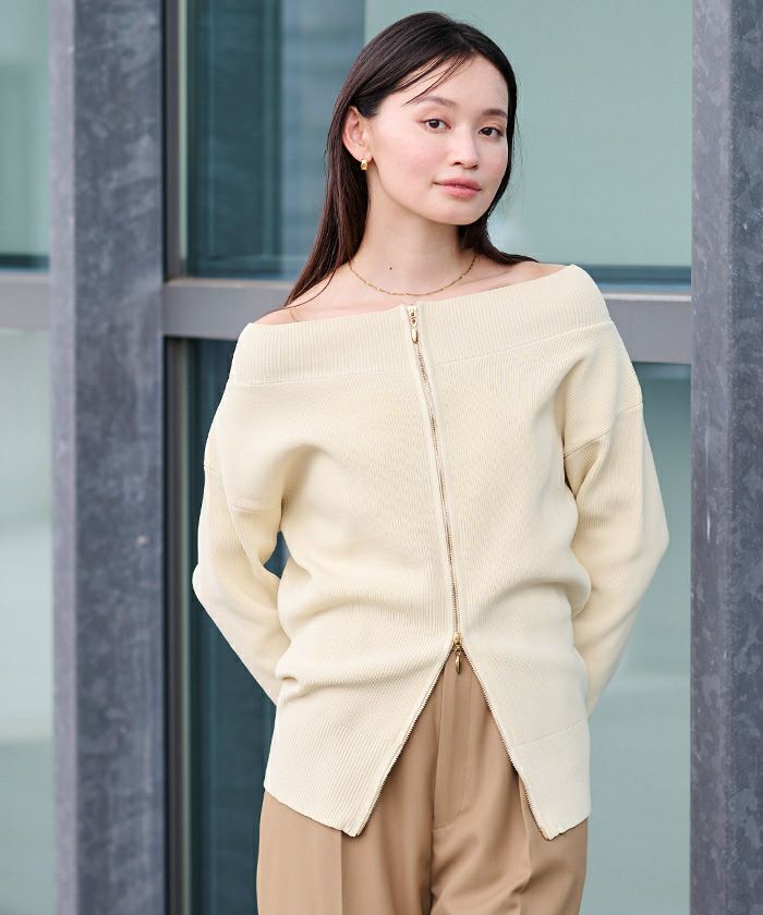 ダブルジップ仕様で、お好みの位置で開けたり閉めたりでき、程よい抜け感を出しやすく、スタイリングのバランスがとりやすい仕様にしています。