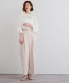 ネックラインと袖口に施したシャーリングがフェミニンな印象を引き立てます。