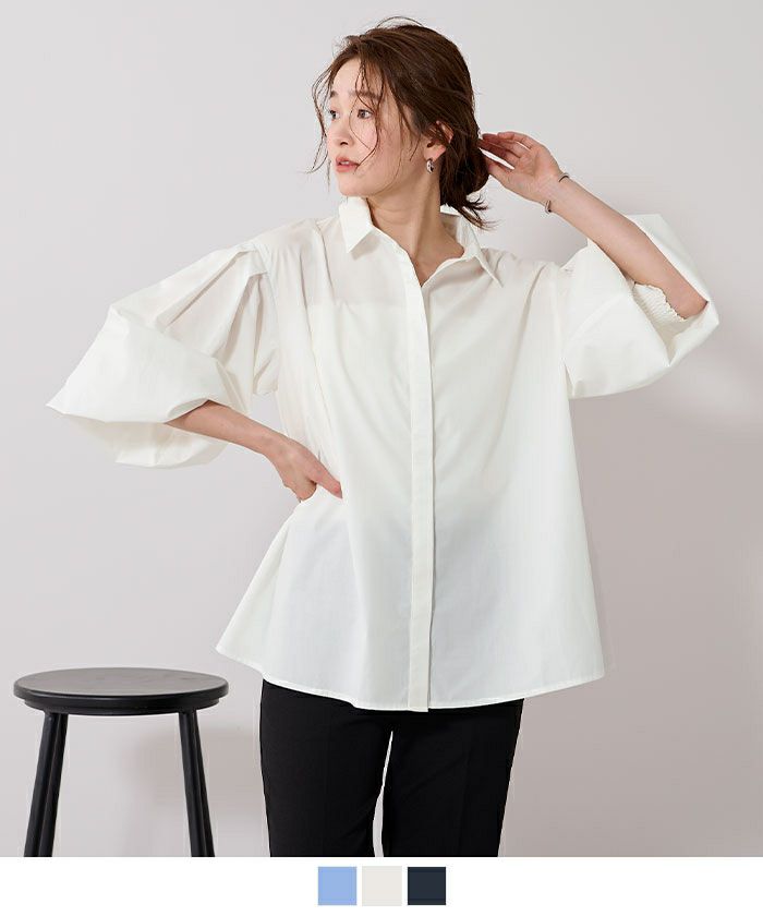 スタンダードカラーボリュームスリーブフレアシャツ【メール便可/100】