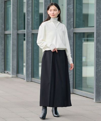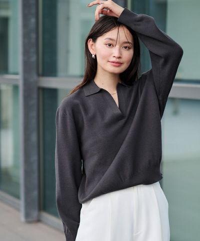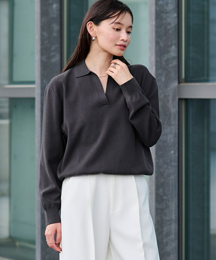 襟付きなので、きちんと感もプラスされ、カジュアルにもキレイめにも対応できる一枚です。