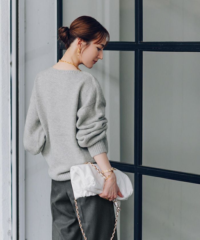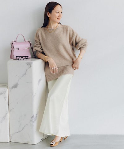 ウールブレンドのヤクライクニットなので暖かい着心地に。