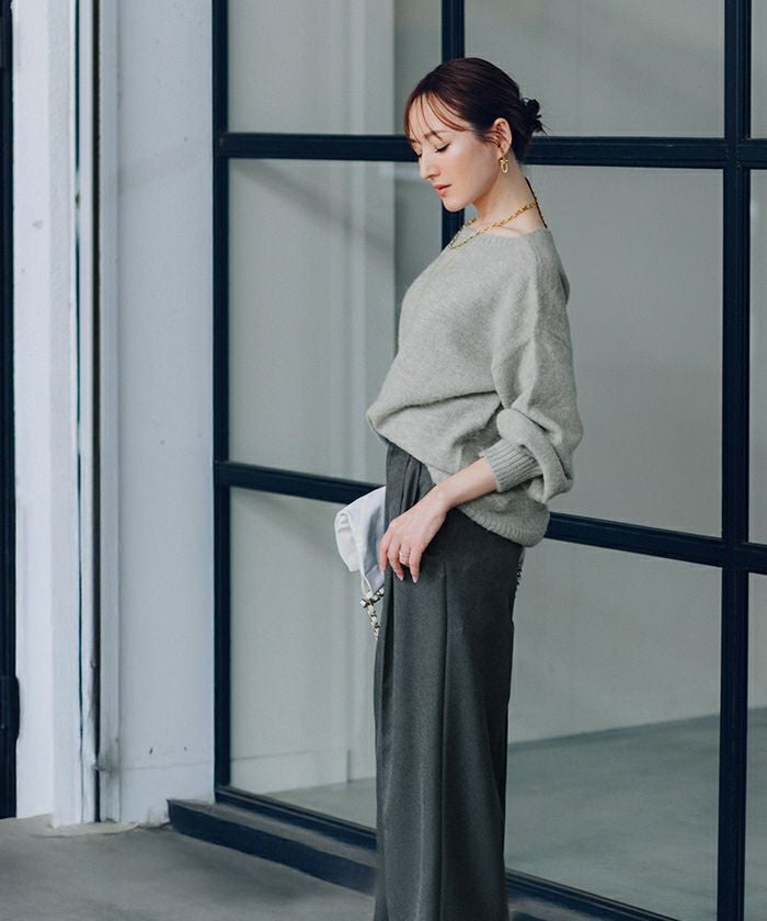 少し厚みがあるが柔らかく暖かく着心地は良い。ボートネックで、ニットだけどオシャレに着られるのがとても良い。グレーを購入したけど、品切れになっていなかったら白も欲しかったな。