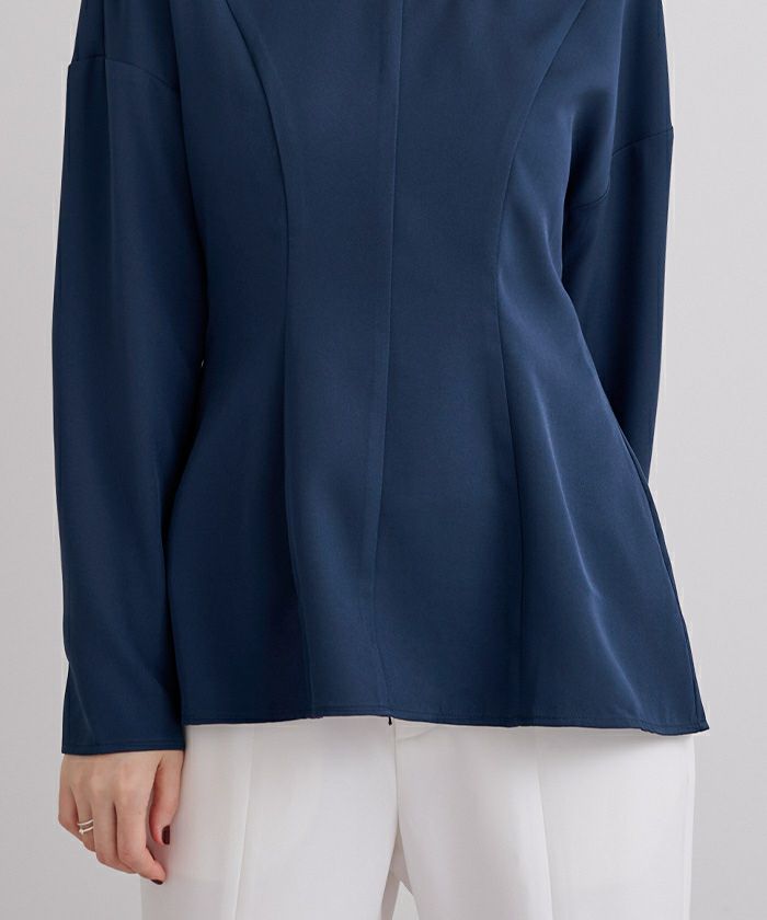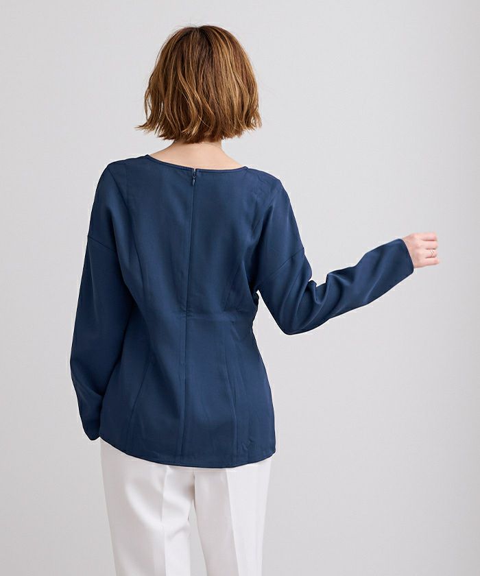 ラウンドネックウエストシェイプブラウス【メール便可/100】