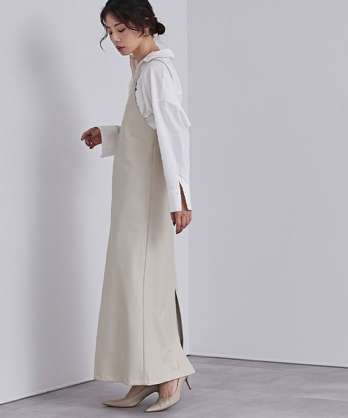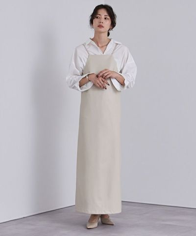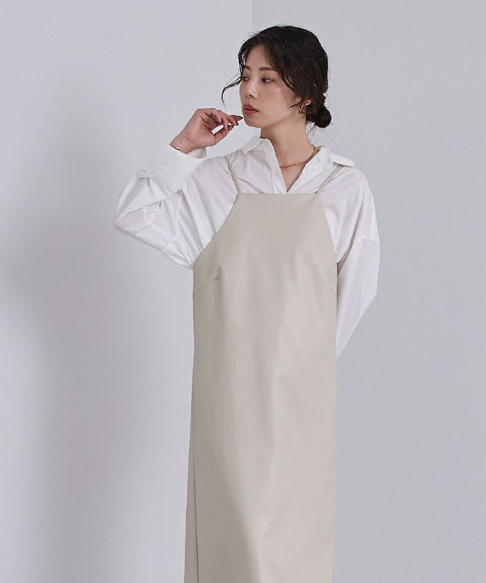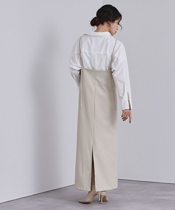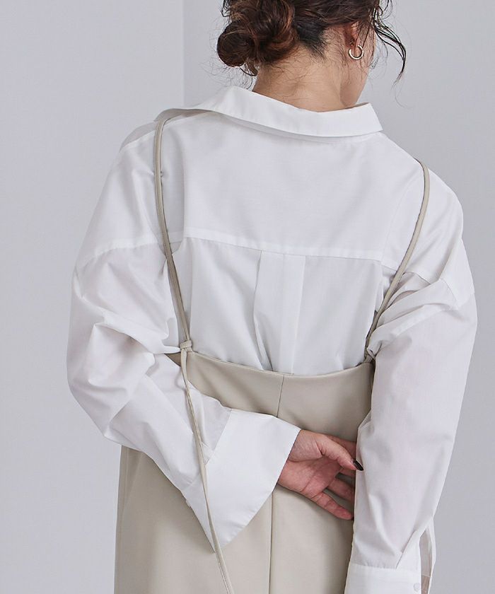 肩の紐はループに通して調整ができ、お好きな位置で着て頂けます。