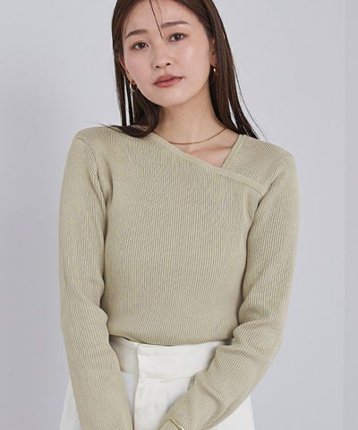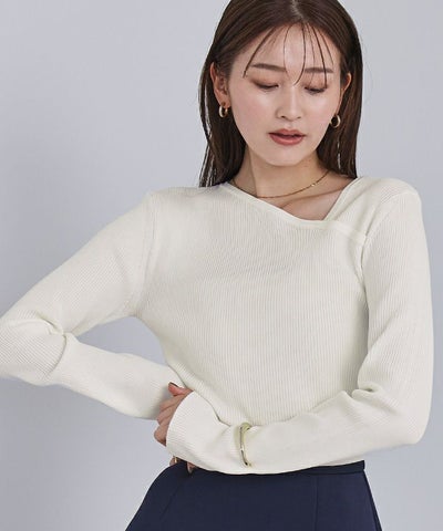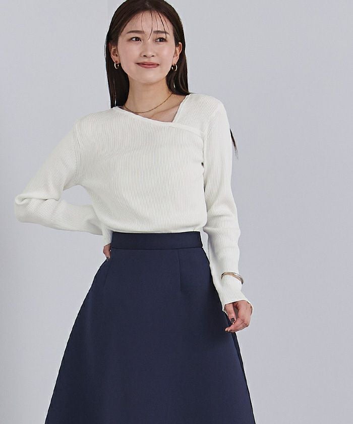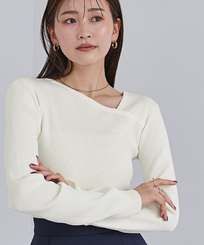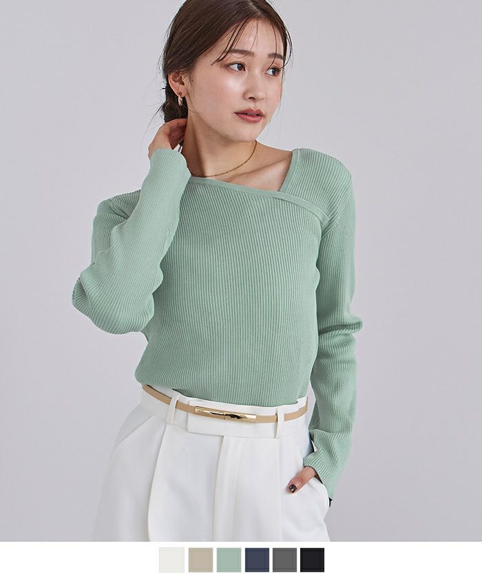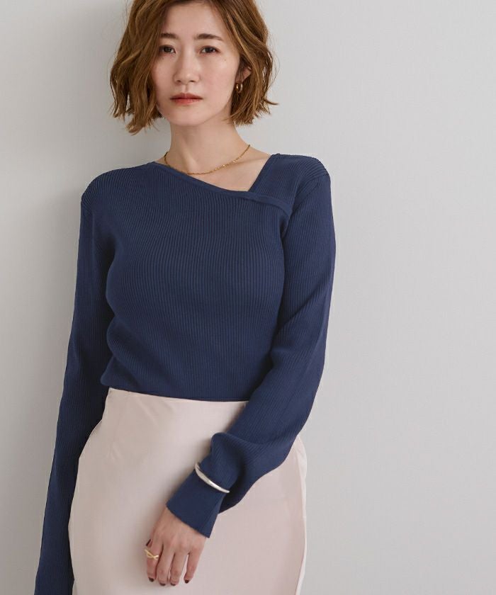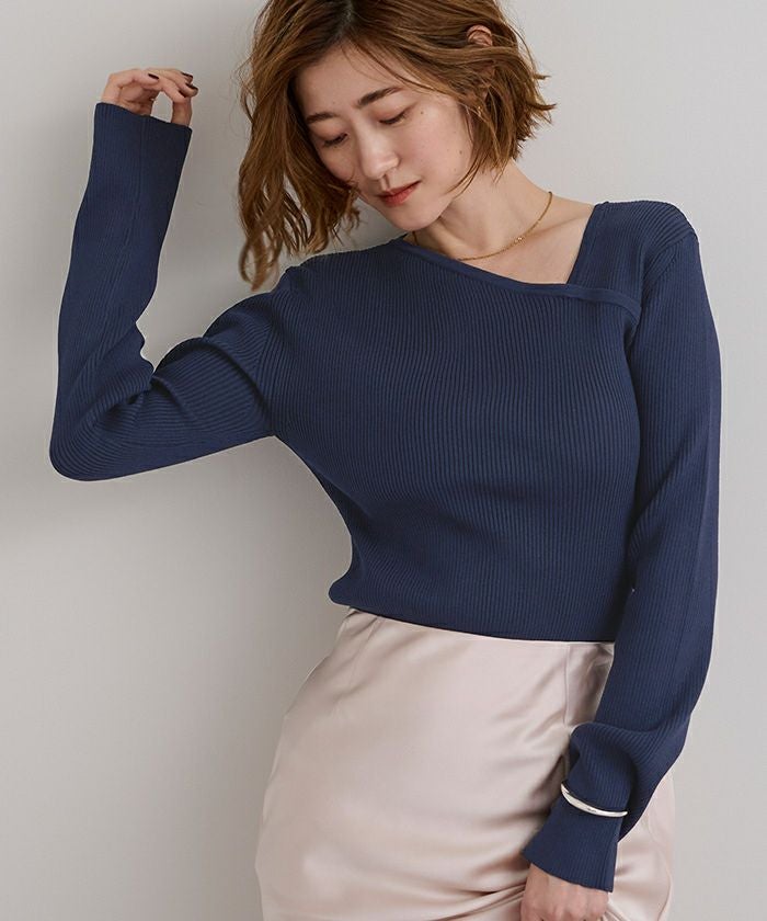 アシンメトリーネックリブニット【メール便可/100】