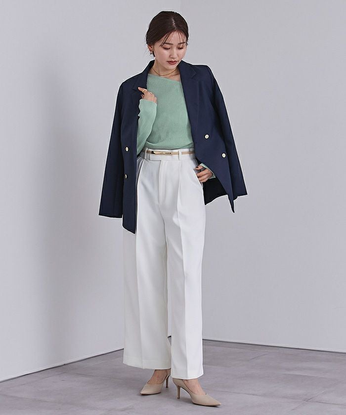 緩やかに傾くアシンメトリーなネックラインが、デコルテを美しく魅せ個性的なアクセントに。