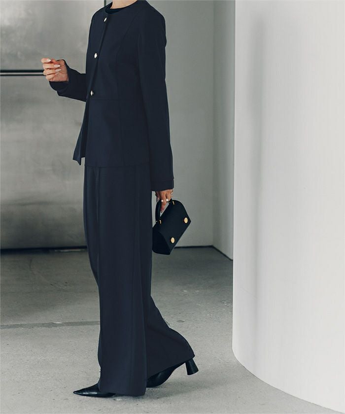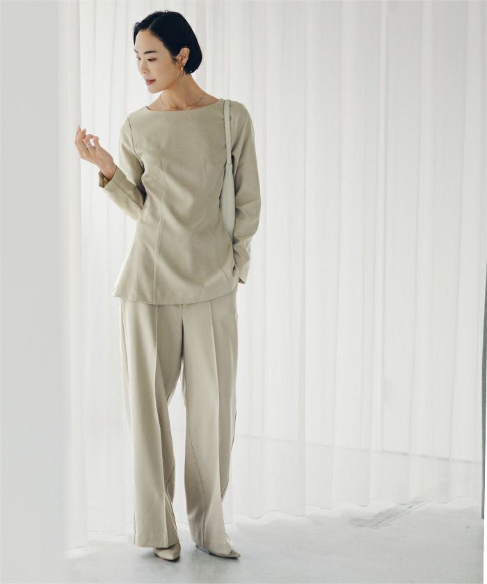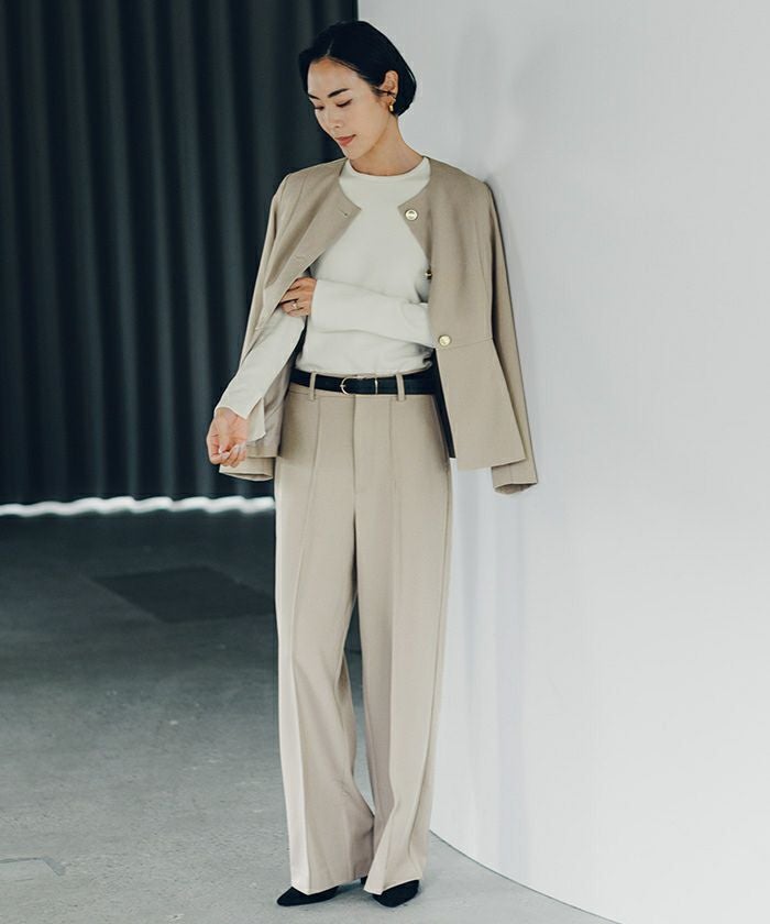 同素材シリーズのブラウスやジャケットと合わせてセットアップで着用して頂くのもおすすめです。