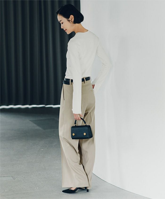 グレージュのハイウェストワイドパンツがほしく、シルエットが1番綺麗そうに見えたこちらのパンツを選択。 お腹周りがタイトなので、食後はちょっと気になります…