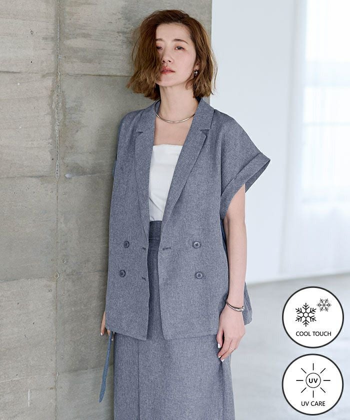 〈シャーベットリネンライク〉生地とは接触冷感とUVケアを兼ね備えたシリーズで、暑さが気になる時期でもさらりと着られるのが魅力です。