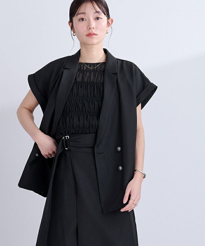 軽やかな着心地ながら、ダブルブレストのデザインが上品な印象を与えてくれる一枚。