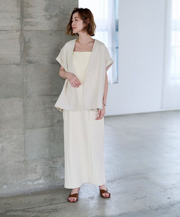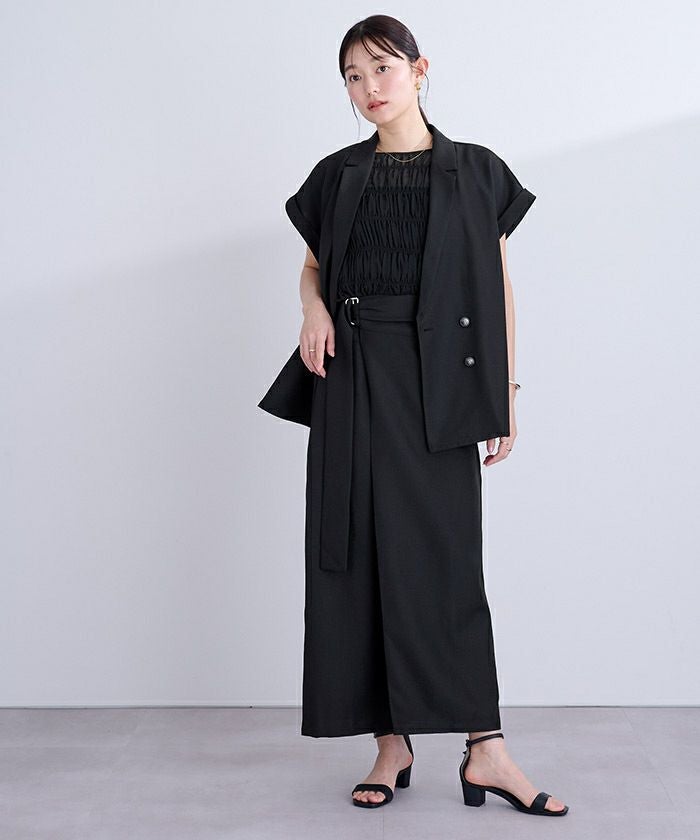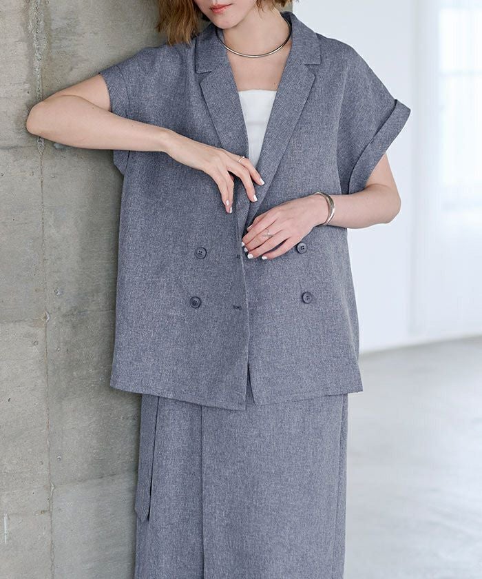 Tシャツやタンク合わせのカジュアルスタイルにも馴染み、同素材のボトムとセットアップで着ればより上品な印象に。