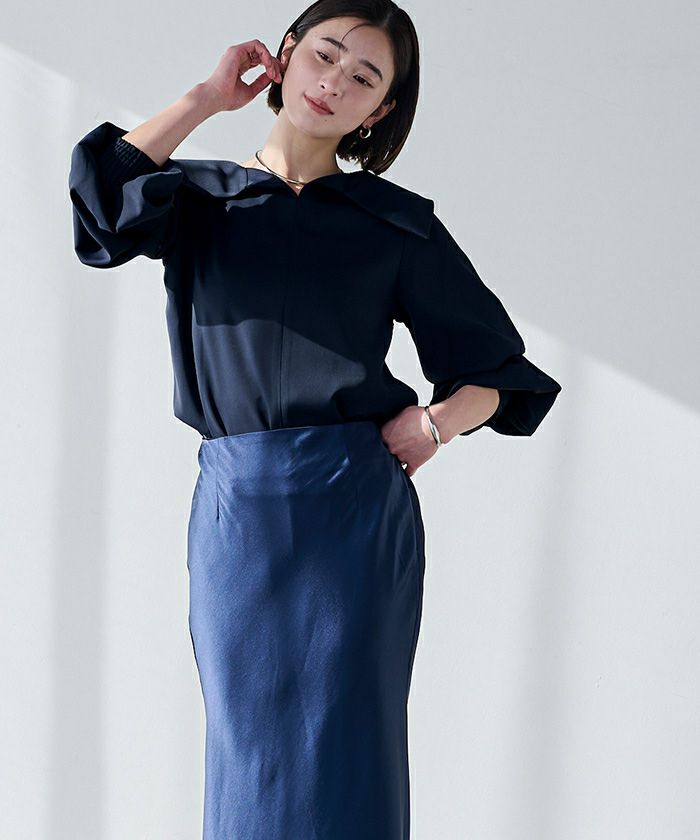 柔らかく落ち感のある素材が上品な抜け感を演出し、