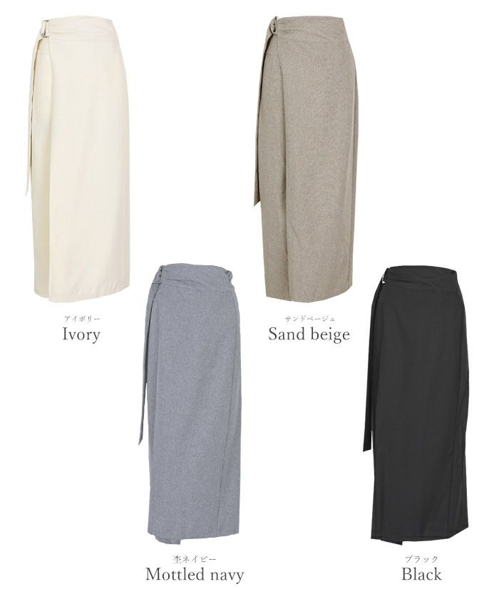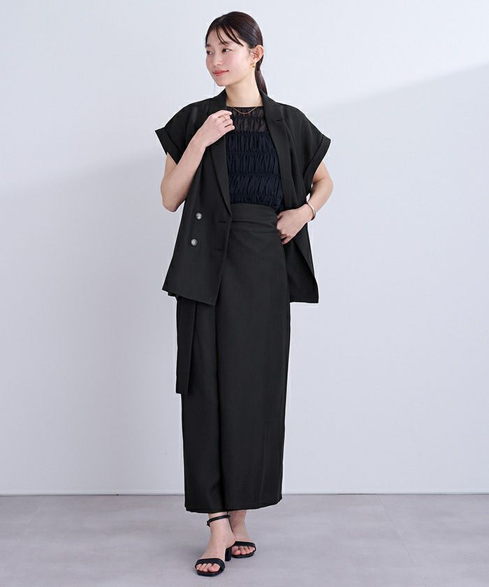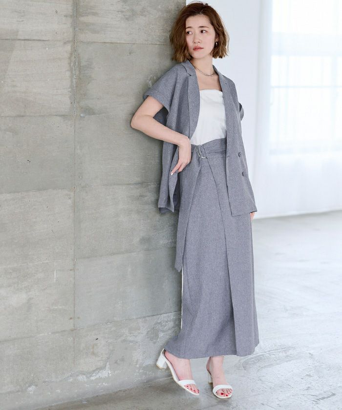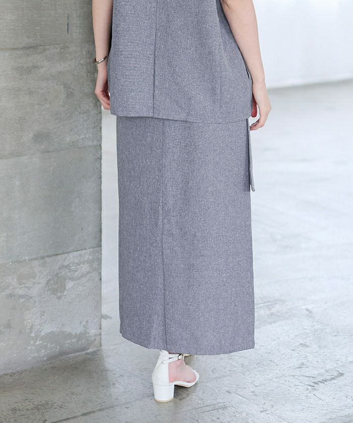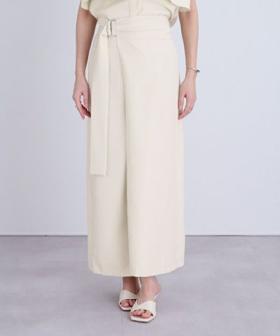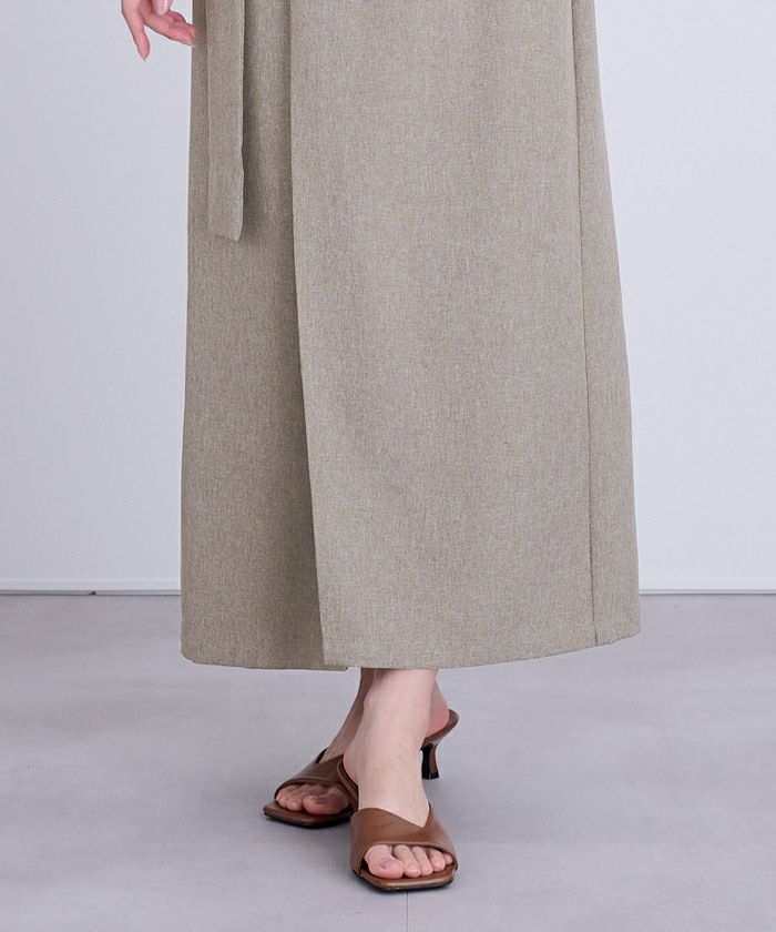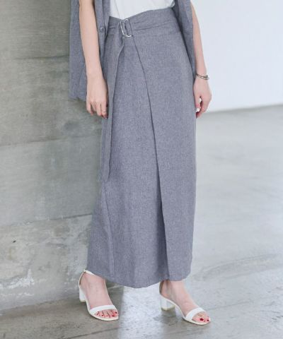 夏にうれしい機能性を備えた〈シャーベットリネンライク〉生地で仕上げた、ラップ調デザインのスカート。