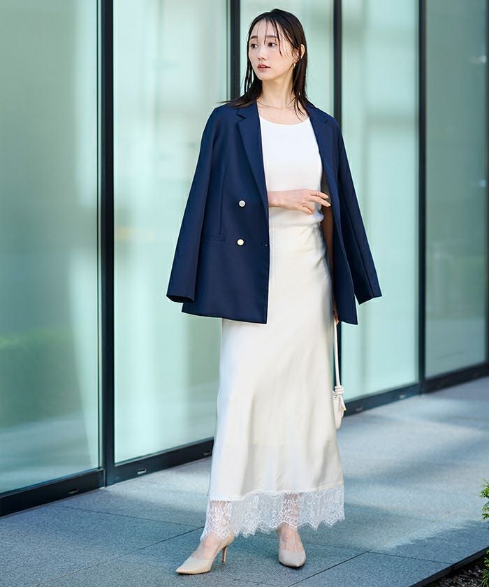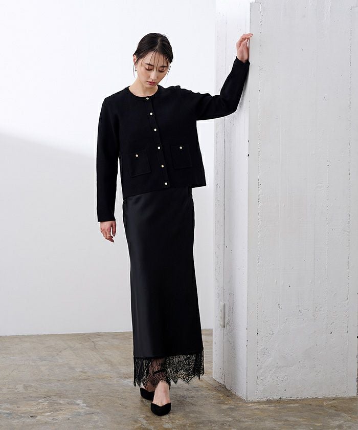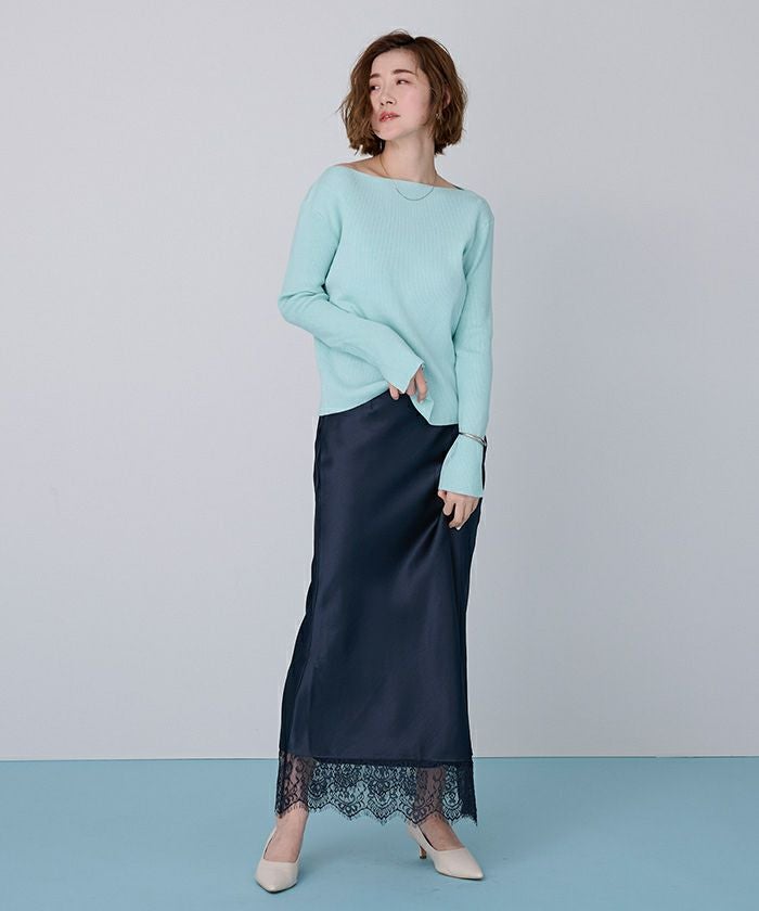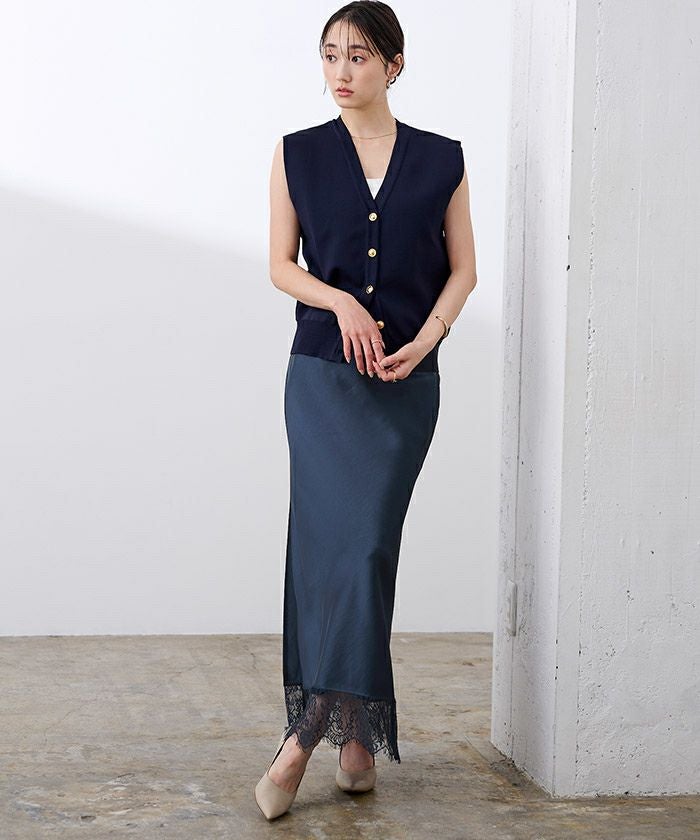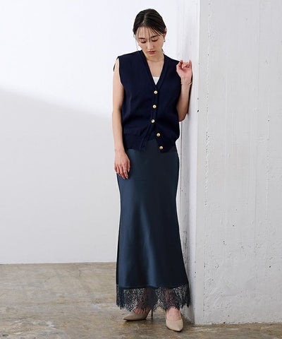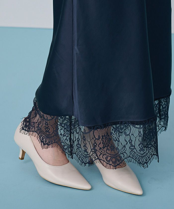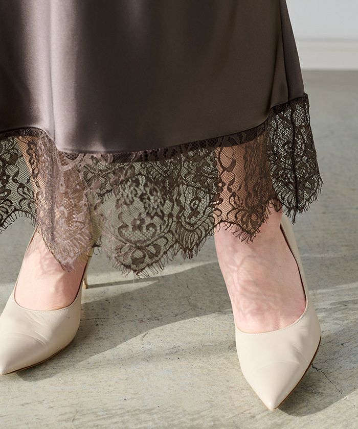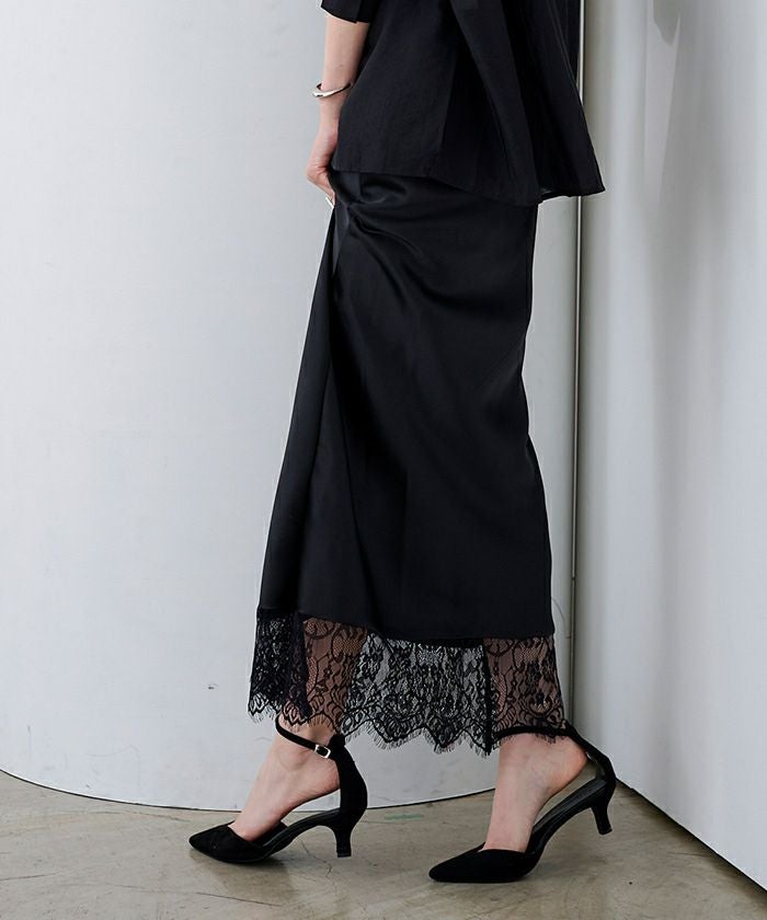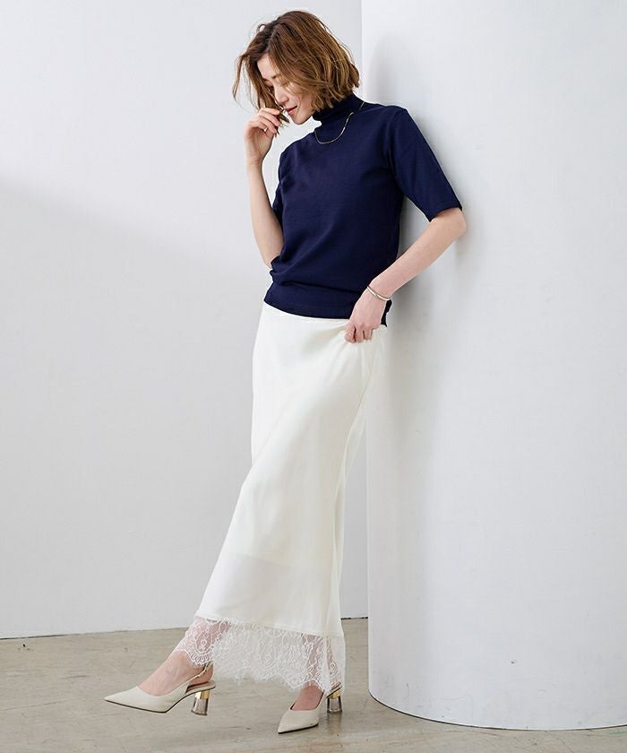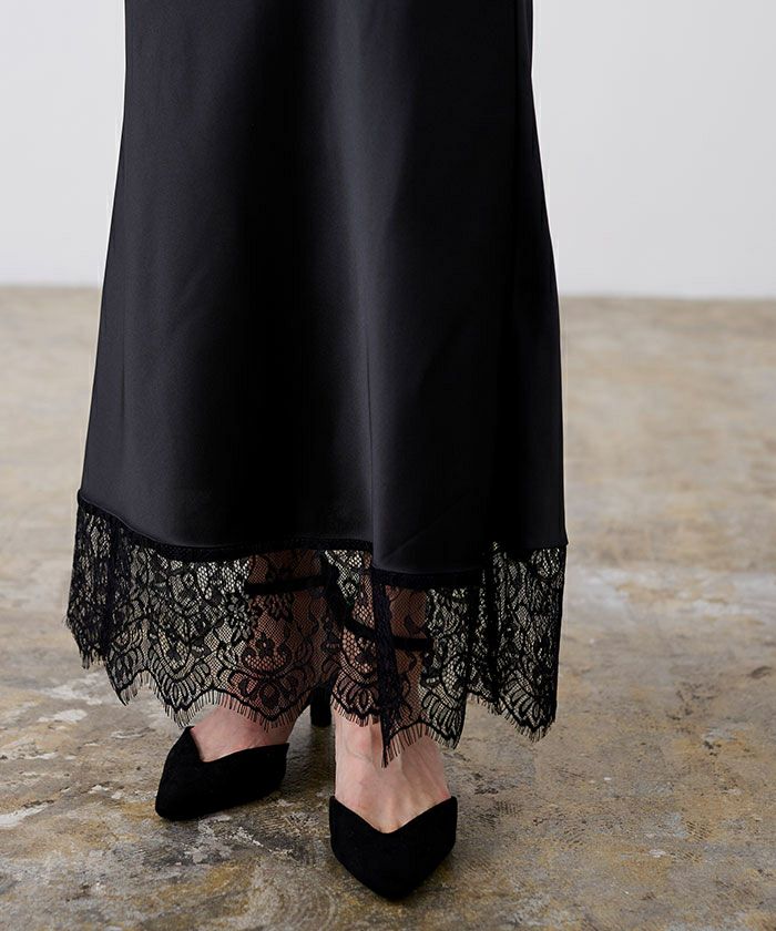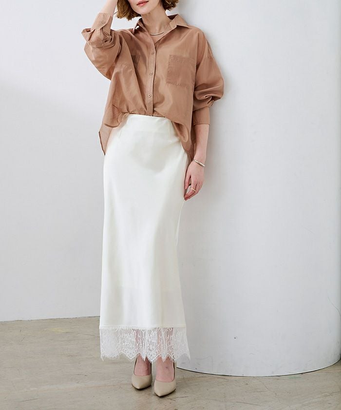 裾にレースをあしらった、上品で女性らしいマーメイドスカート。
