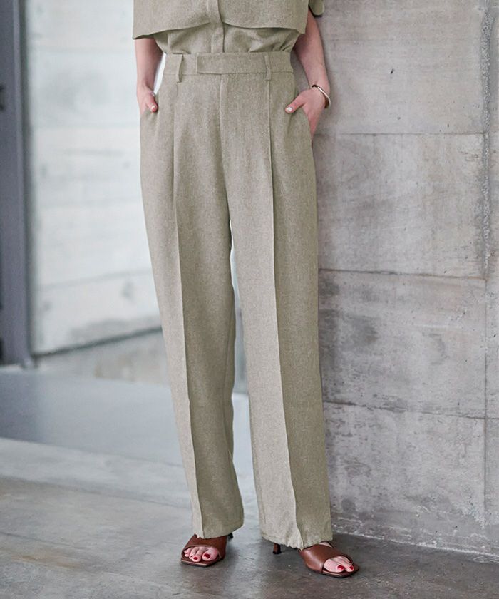 夏にうれしい機能性を備えた〈シャーベットリネンライク〉生地で仕上げた、パラシュートパンツ。