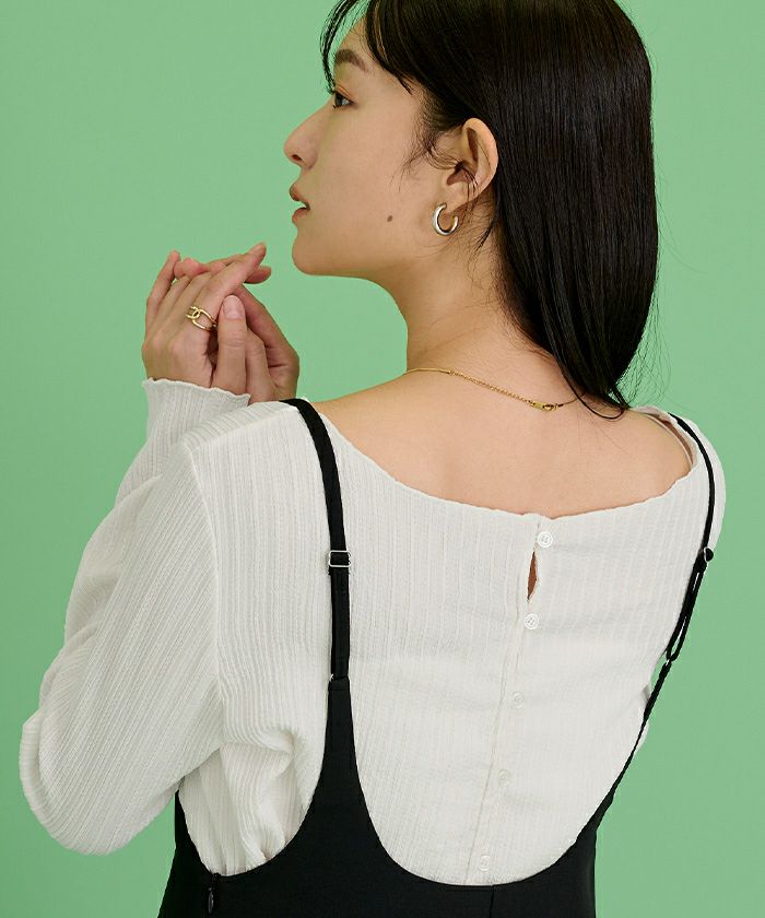 ボタンを前にしてカーディガン風にも、後ろにしてプルオーバー風にも着用でき、シーンや気分に合わせてアレンジを楽しめます。
