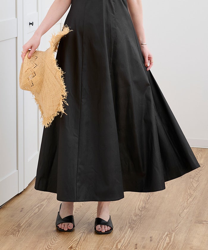 ウエストは程よくフィットし、スカート部分はふんわりと広がるシルエットなので、体のラインを拾いにくいのも嬉しいポイント。