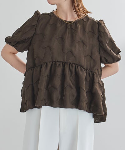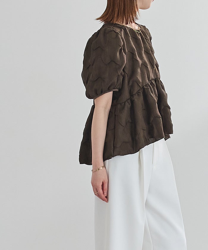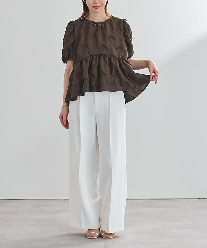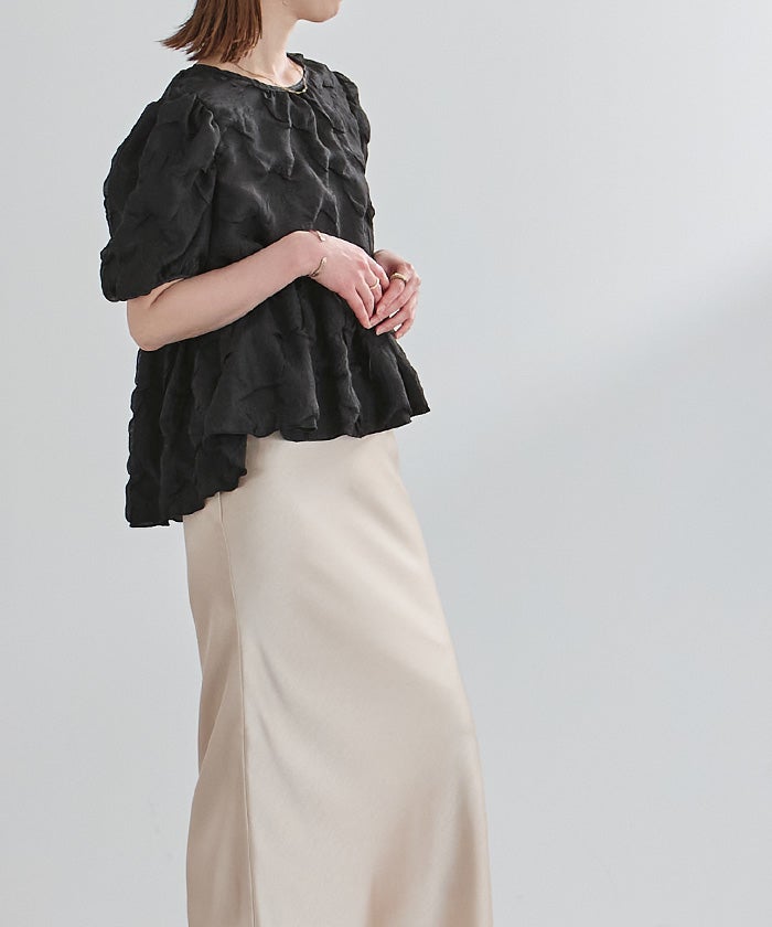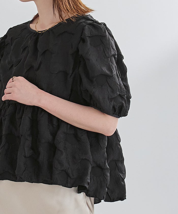 表面感のある素材が目を惹く、着映えトップス。