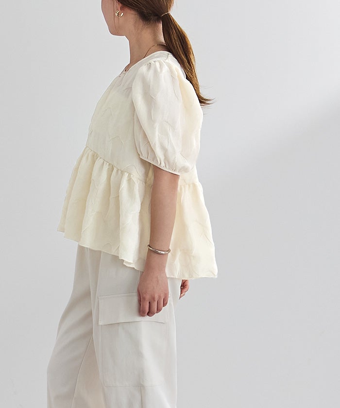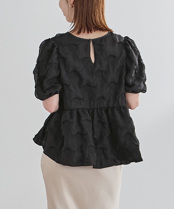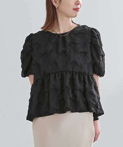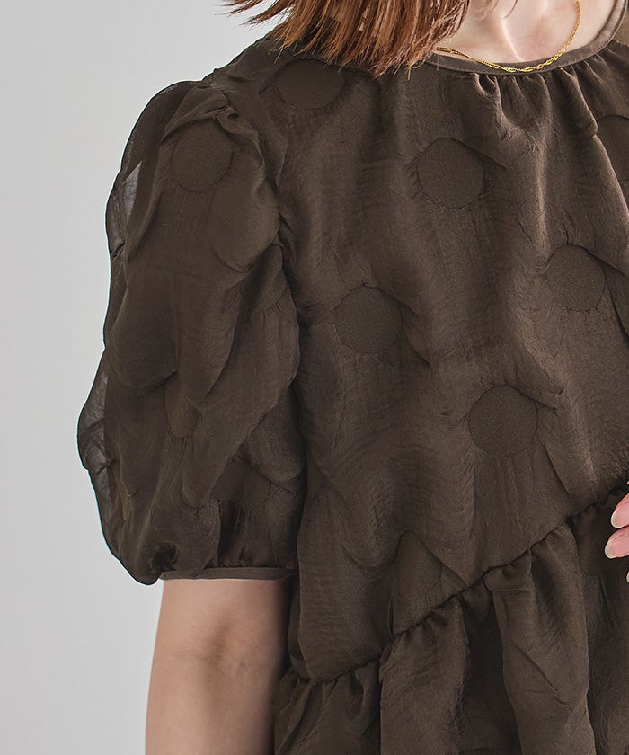 ドットパフスリーブブラウス