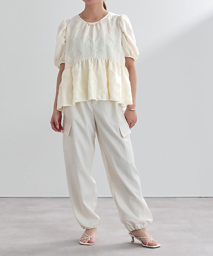 ふんわりと広がるシルエットで身体のラインを拾いにくく、自然に体型カバーが叶うのも嬉しいポイント◎