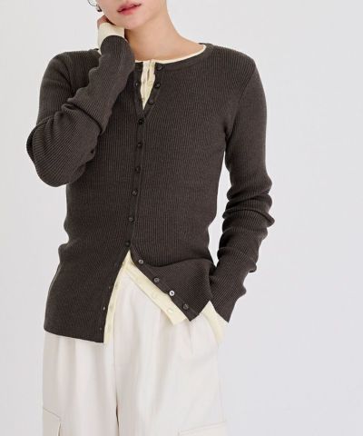 メニー釦リブニットカーディガン