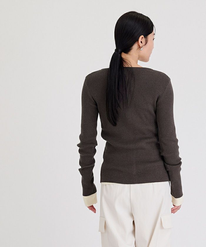 程よい厚みのリブ編みで、身体のラインを拾いにくいのが嬉しいポイント。