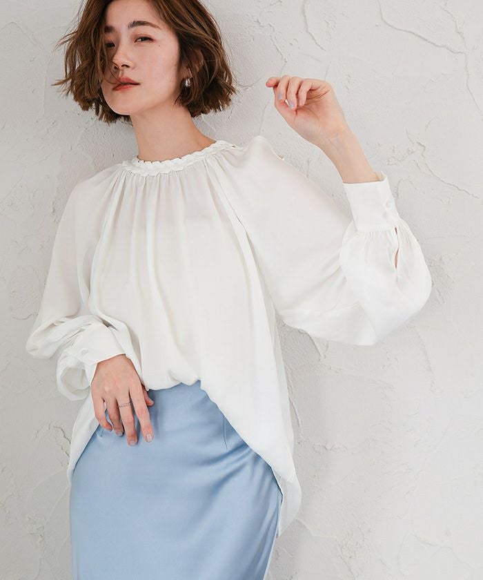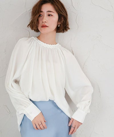 たっぷり寄せたギャザーが自然なボリュームを生み、ふんわりとしたシルエットで柔らかな雰囲気に◎